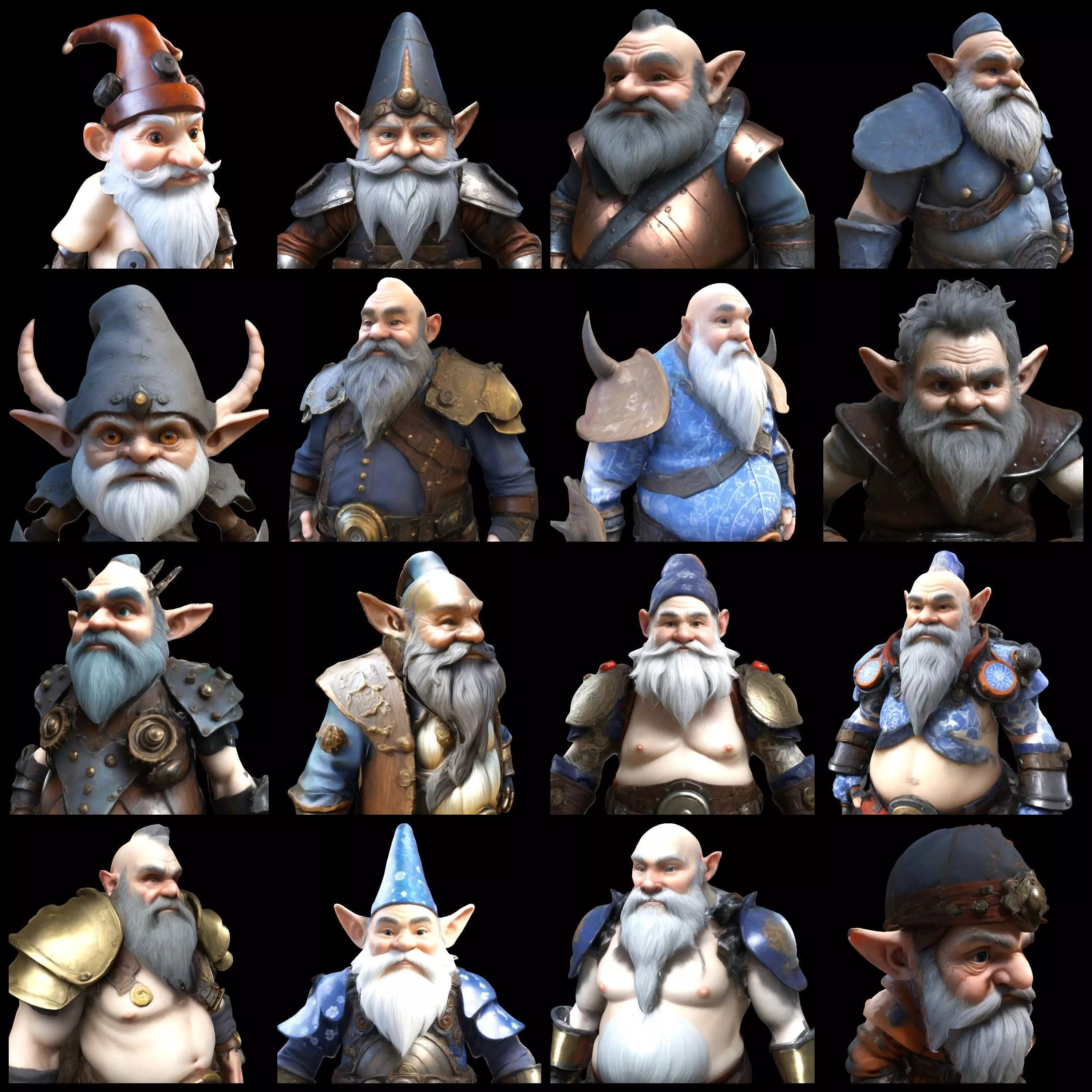 Meet your new squad of pint-sized protectors! This set of sixteen full-body gnome warriors was lovingly crafted by AI-assisted 3D generation and honed by an artist’s touch. Each gnome sports unique armor, weapons, and facial expressions—from the stoic Captain Ironbeard to the mischievous Scout Twigglefoot. Designed as single-piece figures (no assembly required), they’re ready for printing, painting, and plunging into epic adventures.