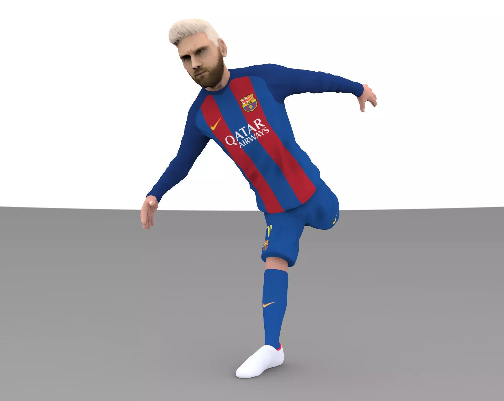 This full figurine of Leo Messi is prepared to give the best result in multicolor 3D printing. There are no thin areas, shadows are reduced to the minimum, skin tone is unified. Generally texure converts to CMYK very well. The model is hollow, so if you would want to print the model at a very low scale you may have to close the shell.