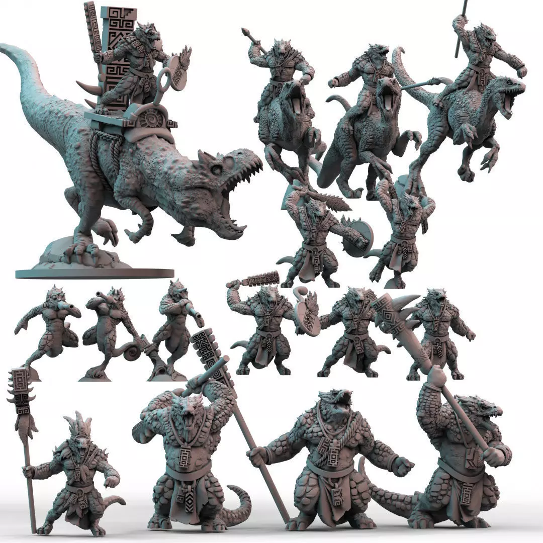 5x Lizardmen with customisable weapons optionWeapons based on classic Aztec weapons, including spears, shields, macuahuitl and axes