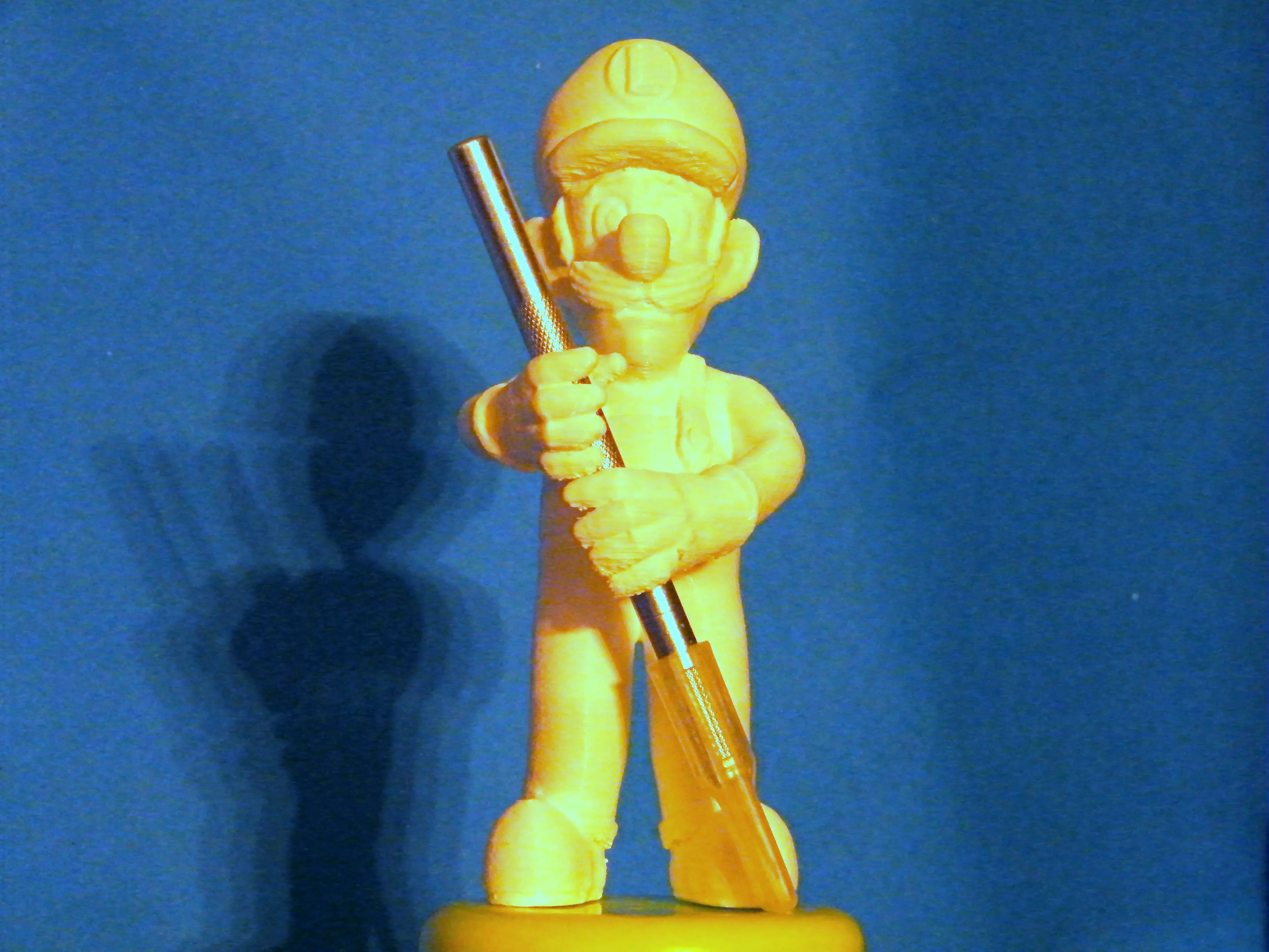Luigi holding a pencil or something.