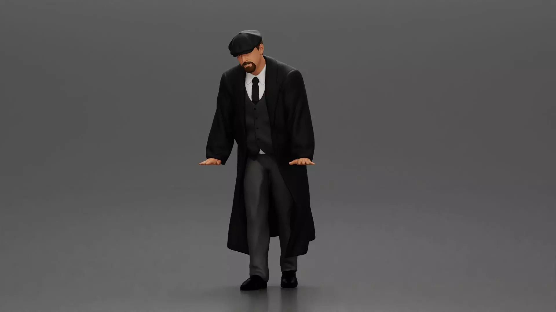 Man in coat wearing flat cap standing with serious expression 3D print model