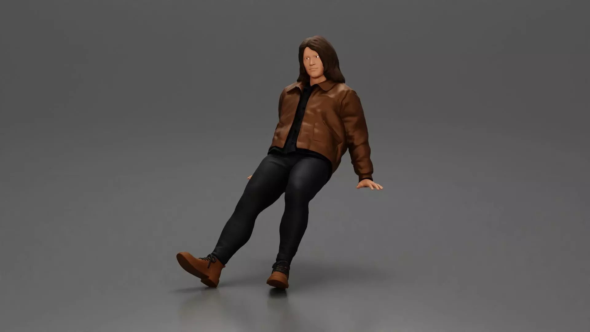 Man with long hair wearing jacket sitting with relaxed posture 3D print model