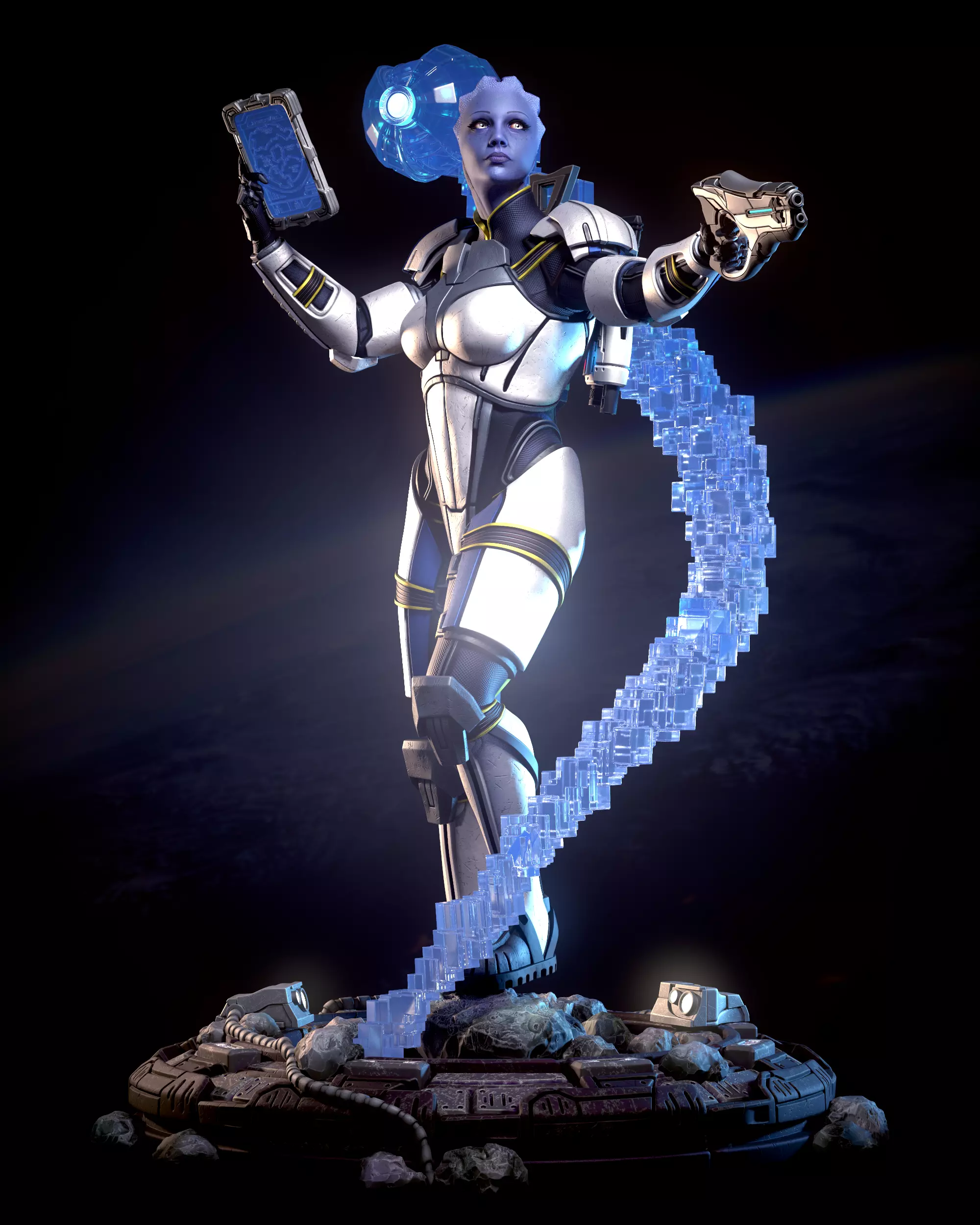 The world of intrigue is very similar to the territory of archaeological excavations. The main difference is that the corpses still stink (с).That's is my fan-art statue of one of important characters from Mass Effect game series - Liara T'soni, 109 years old (but young for her own race) asari archeologist and information broker, who has serious biotic powers.Additional renders you can find here (grey ones - https://www.artstation.com/artwork/lRAZmk) and here (polypainted - https://www.artstation.com/artwork/5B6PXP). Figure have a lot of optional parts, so i decided to split it to 4 separated lots.