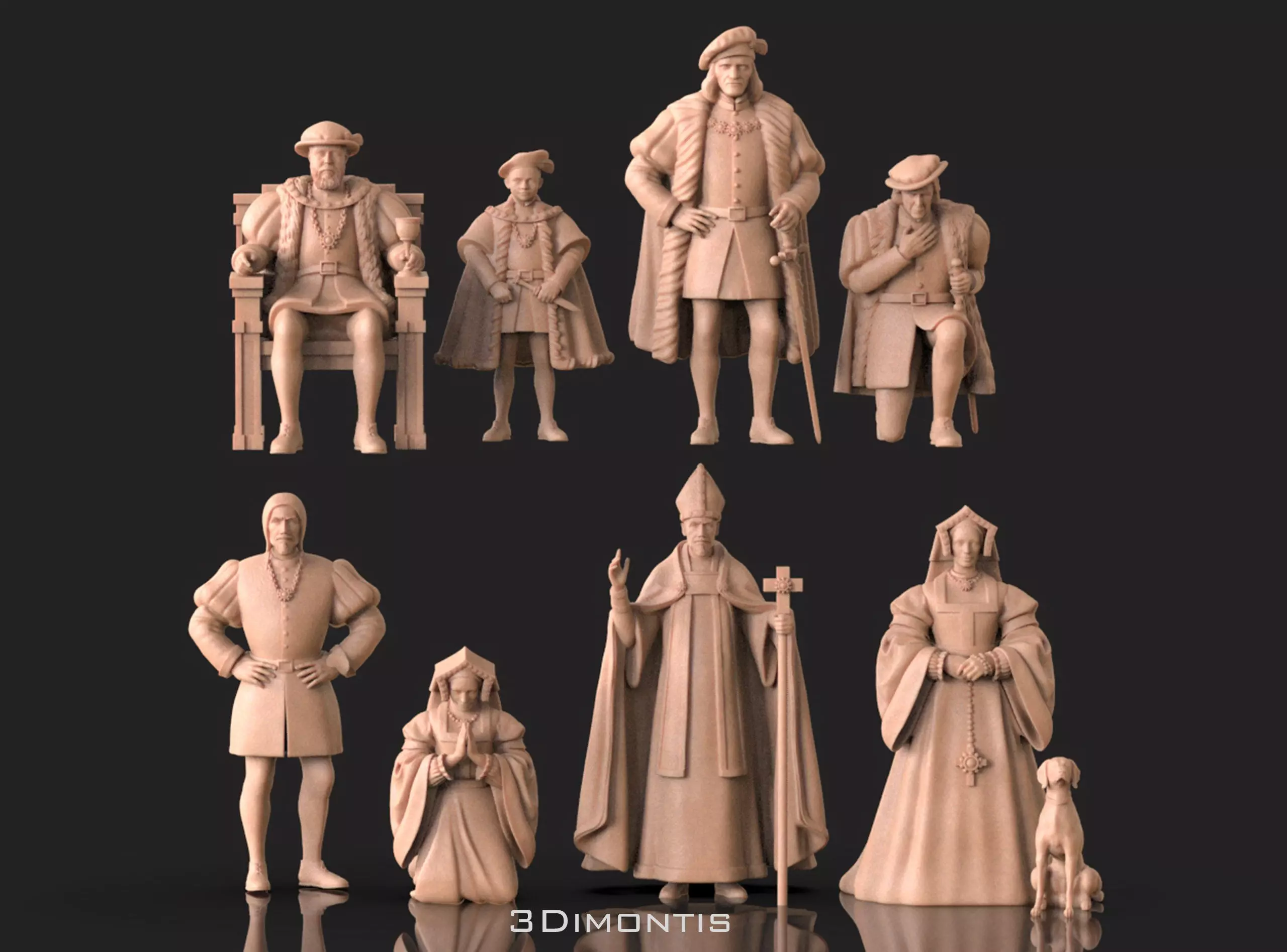This detailed Medieval Nobility and Clergy 3D Model Set represents a Renaissance royal court, including nobles, clergy, and aristocratic figures in authentic historical clothing.The collection is ideal for 3D printing, historical dioramas, tabletop wargames, board games, collectors, and educational projects.