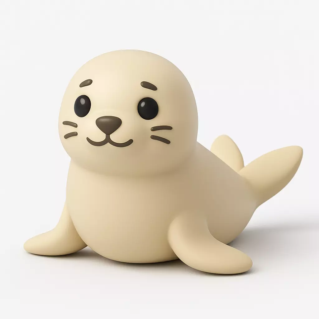 A mini seal pup with big eyes, whiskers and a smooth rounded body in a relaxed pose. Designed as a single solid ornament that prints easily and is ideal for small gifts and paint work.