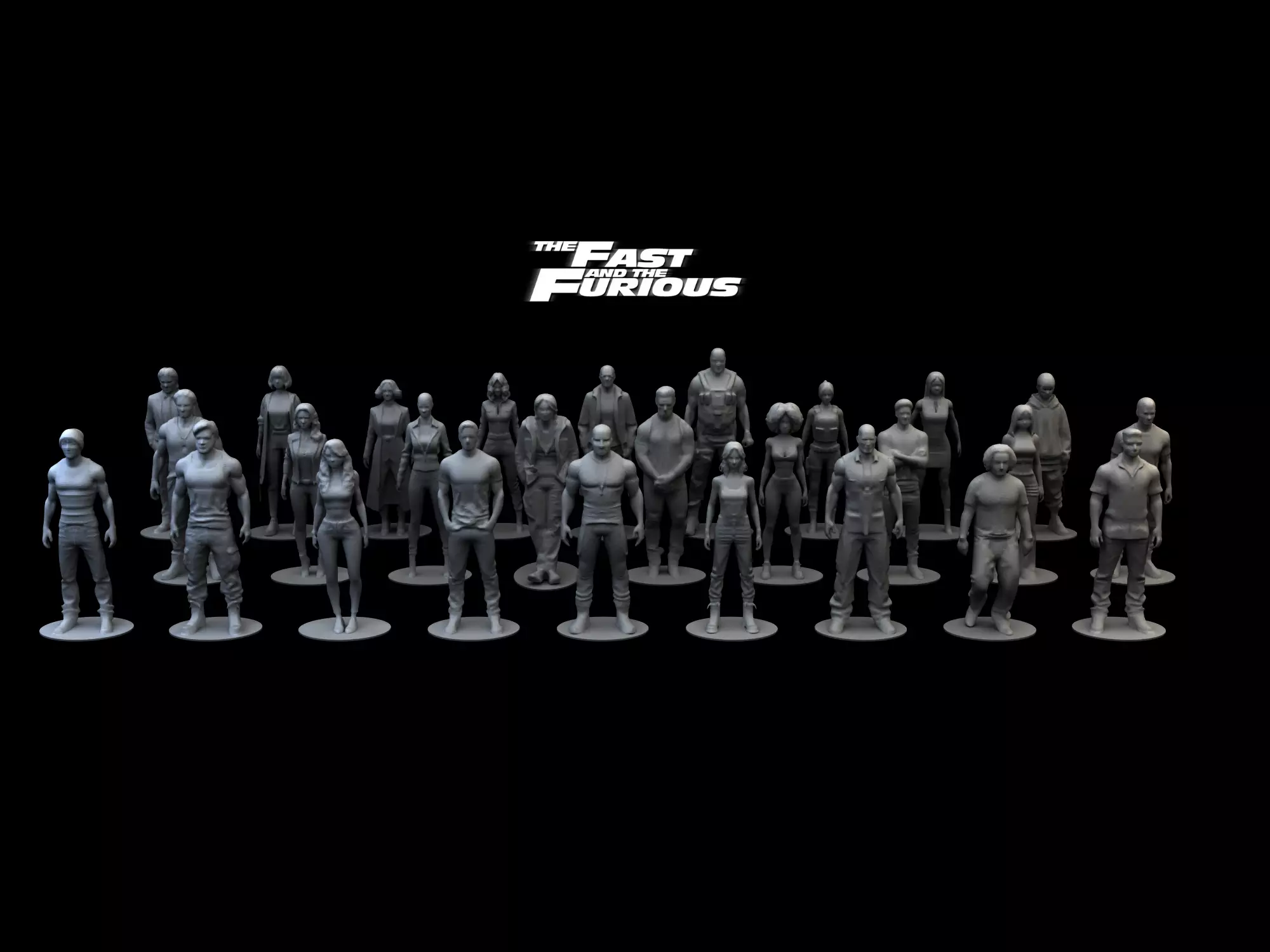 Miniature collection of characters from the Fast and Furious saga, designed at a 1:32 scale for 3D printing, perfect for fans who want a unique collectible, creatives who enjoy printing and painting 3D figures, or as a decorative complement to your scale car collection from the saga (JADA).
