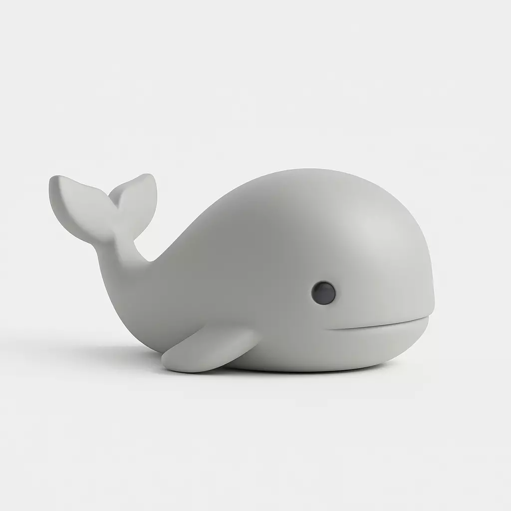 A smooth, minimalist whale figurine with a rounded body, tiny fins and a gentle smile. Designed as a clean one-piece ornament that is easy to print and perfect for ocean or sea-themed decor.
