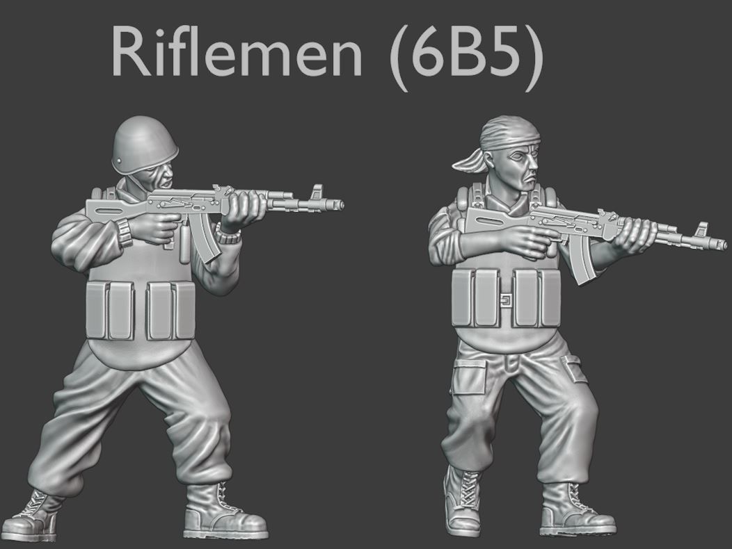 In this set you will find two modular models of Russian soldiers c. 2000 year, carrying AK-74 assault rifles and equipped with govenment-issued 6B5 ballistic vests.