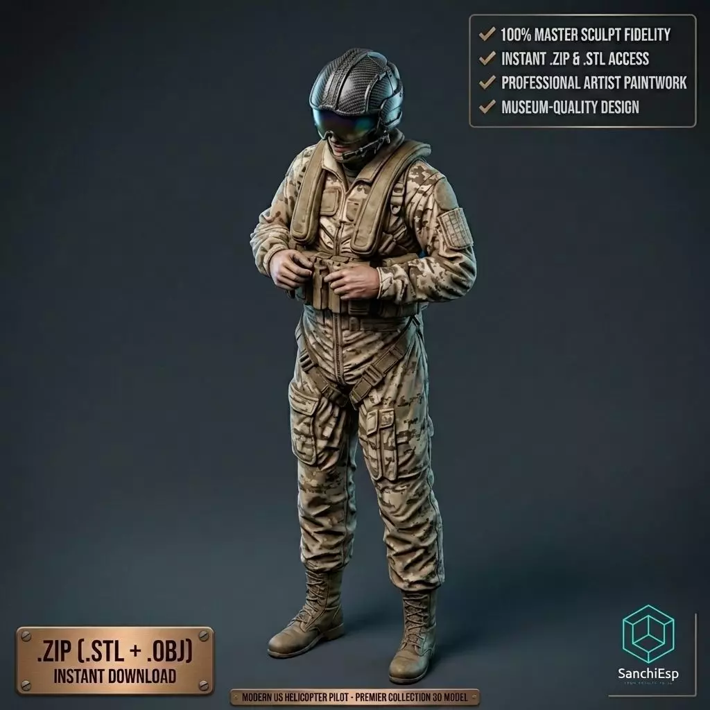 Bring professional realism to your 3D printing projects with this Modern US Helicopter Pilot figure, a highly detailed model created for demanding makers, collectors, and aviation enthusiasts. This sculpt captures the strength, precision, and discipline of a contemporary helicopter pilot, making it a standout centerpiece for both display and technical projects.