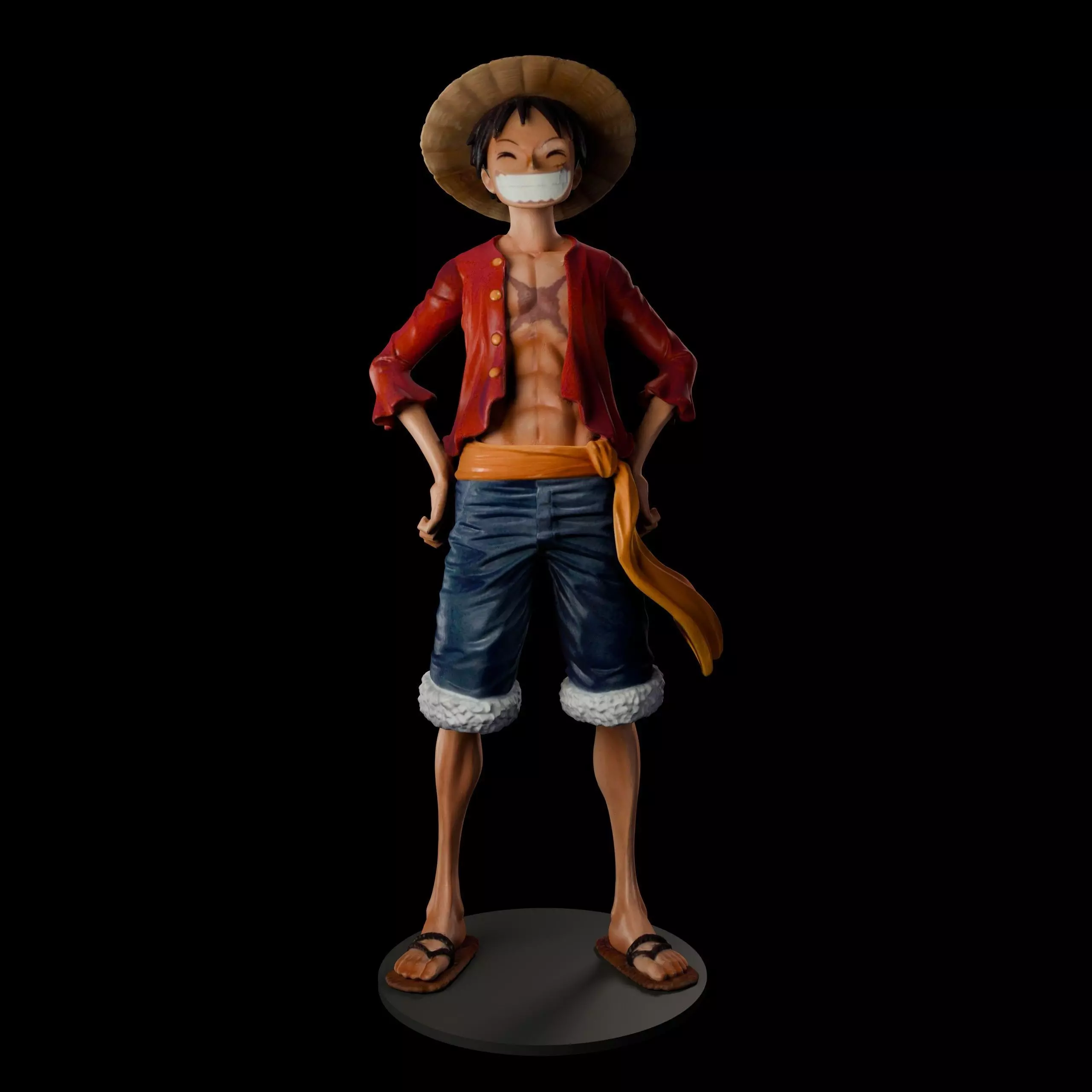 3D model descriptionDiscover this meticulously crafted 3D printable model of a scanned version of a beloved character, featuring a detailed representation inspired by the iconic design of Monkey D. Luffy from One Piece. This fan-made model captures his adventurous spirit with a wide-brimmed straw hat, open shirt revealing a muscular chest, shorts with a flowing sash, and signature sandals, all posed in his classic confident stance. Originally created through 3D scanning and refined for printing, this model is perfect for collectors, cosplayers, and One Piece enthusiasts.