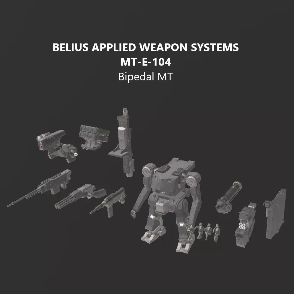 This model's Default scale is meant to fit with Bandai's 30MM kits. This pack includes parts to make the following variants: