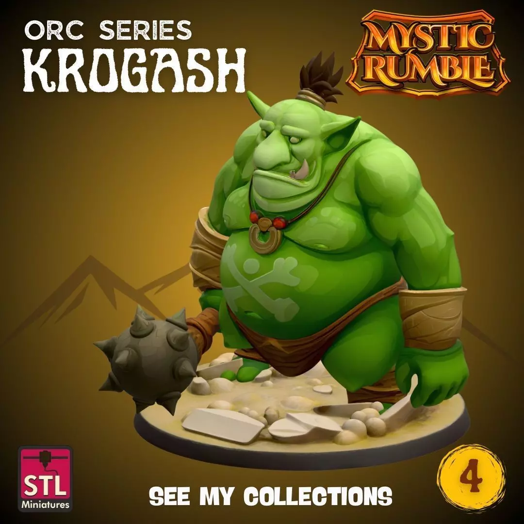 keywords: fat orc stl, spiked mace orc, fantasy orc model, mystic rumble orc 4, heavy orc 3d print, dnd monster mini, orc warrior printable, fantasy brute with mace, tabletop rpg orc, chunky orc figure, muscular orc stl, collectible fantasy miniature, monster with base, detailed orc sculpture, rpg battle character