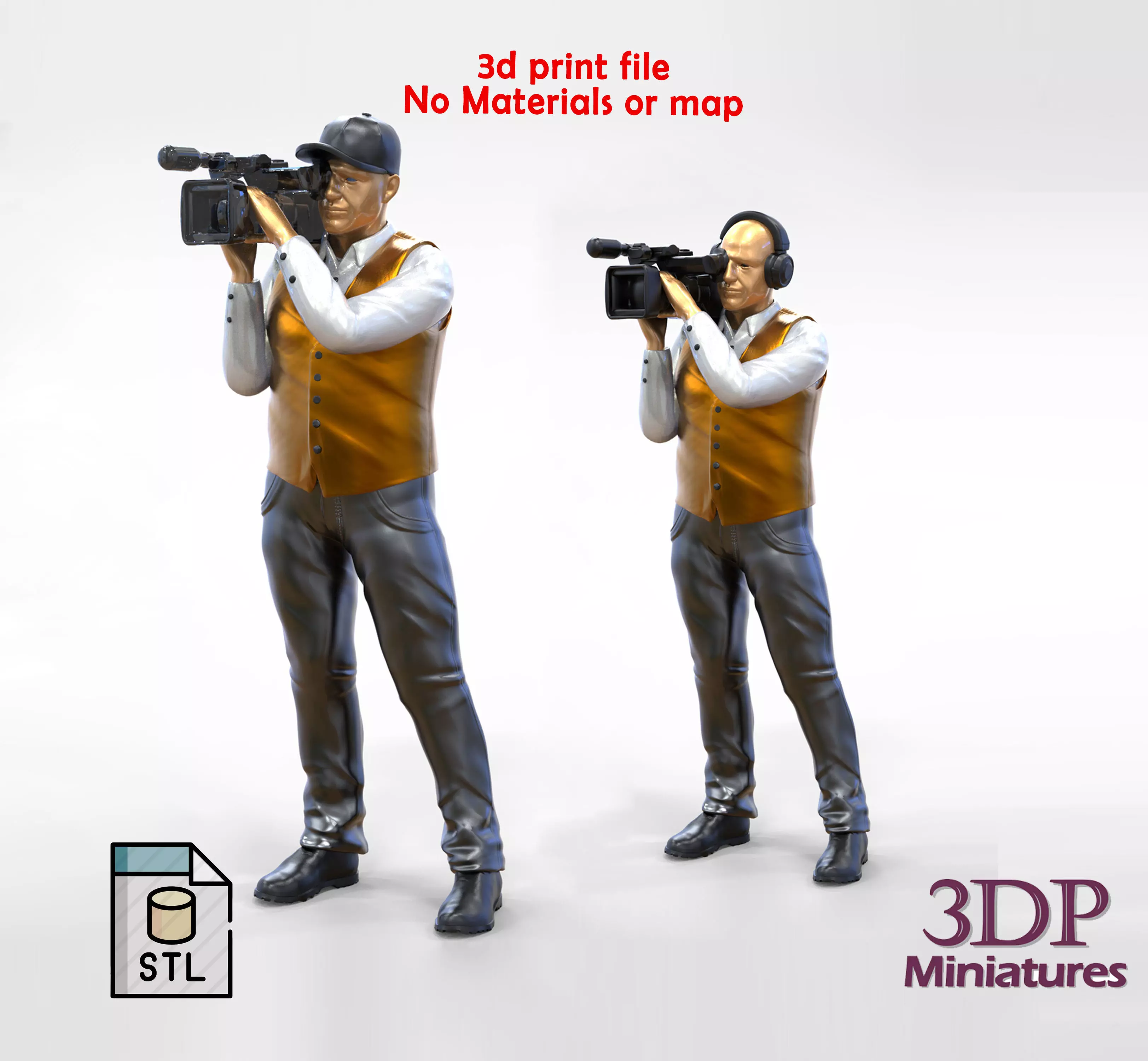 miniature , 3d print , decor , cameraman , 1/64 , video camera , human , miniatures , video , vest , standing , headphone , Figurines , report , reporter , record video , on shoulder