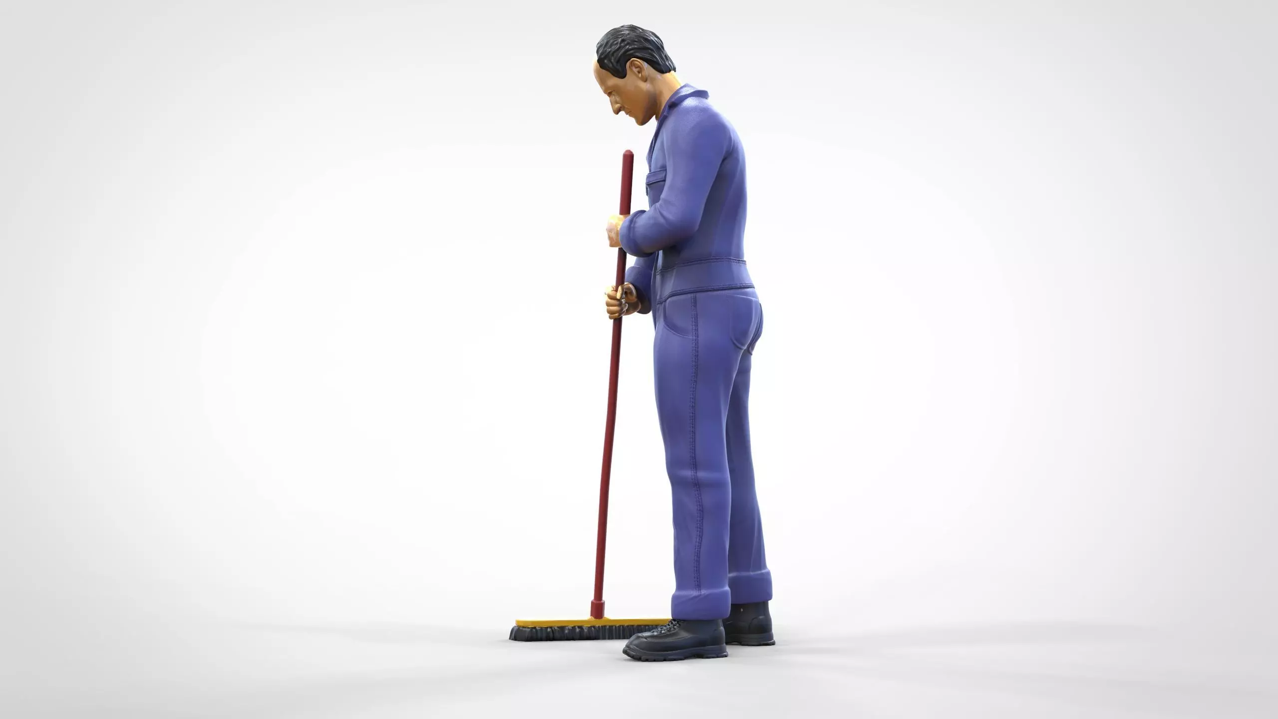 Miniature, 3d print, figures, figure, figurine, Diorama, posing, printable, sculpture, character, Cleaner, Janitor, Brooming, Broom