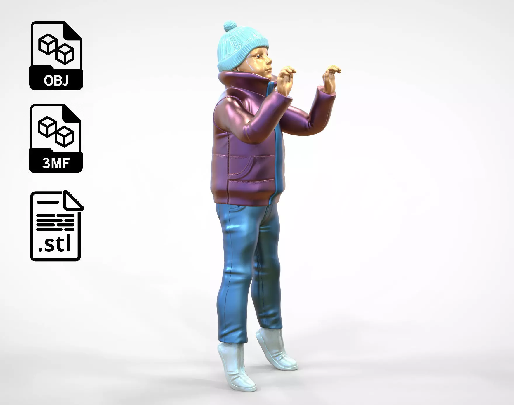 The model is available in several popular formats including OBJ, STL (print-ready), and 3mf.