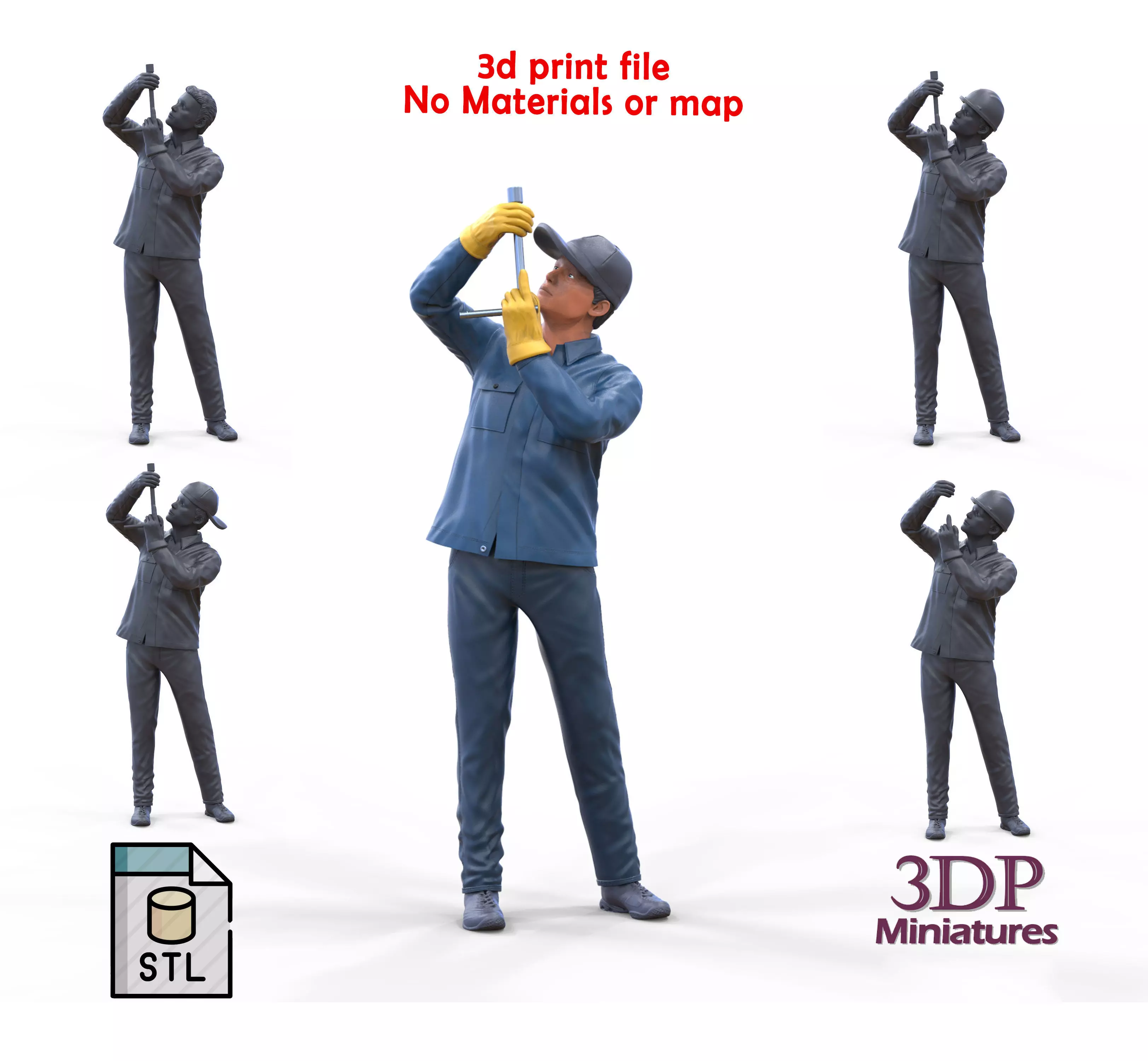miniature, 3d print, human, miniatures, Figurines, 3dp Miniatures, Diorama, Figurine, Movie, Diecast, 3d print Figures, 3d printable, Construction worker, race, Mechanic, Pit-crew, pit crew, 3dpMiniatures, Wheel Gun, tire, car jack, Mechanic Crew, working under a car, construction worker