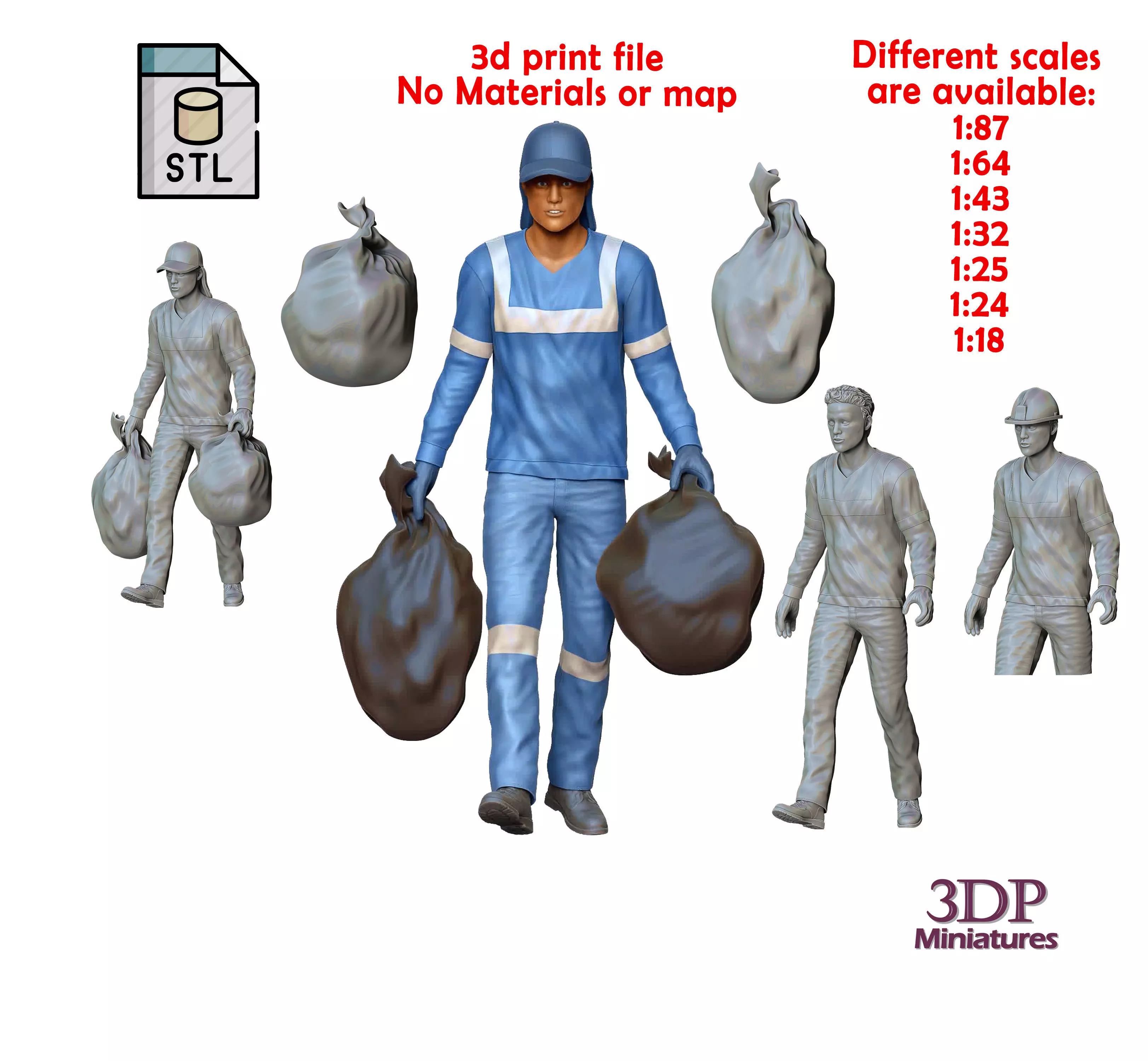 miniature, 3d-print, miniatures, Figurines, 3dp-Miniatures, Diorama, Figurine, Diecast, 3d-print-figures, 3dpminiatures, Patreon, Police, Sweepers, garbage, worker, rubbish, construction-worker, construction, garbage-truck, Walking
