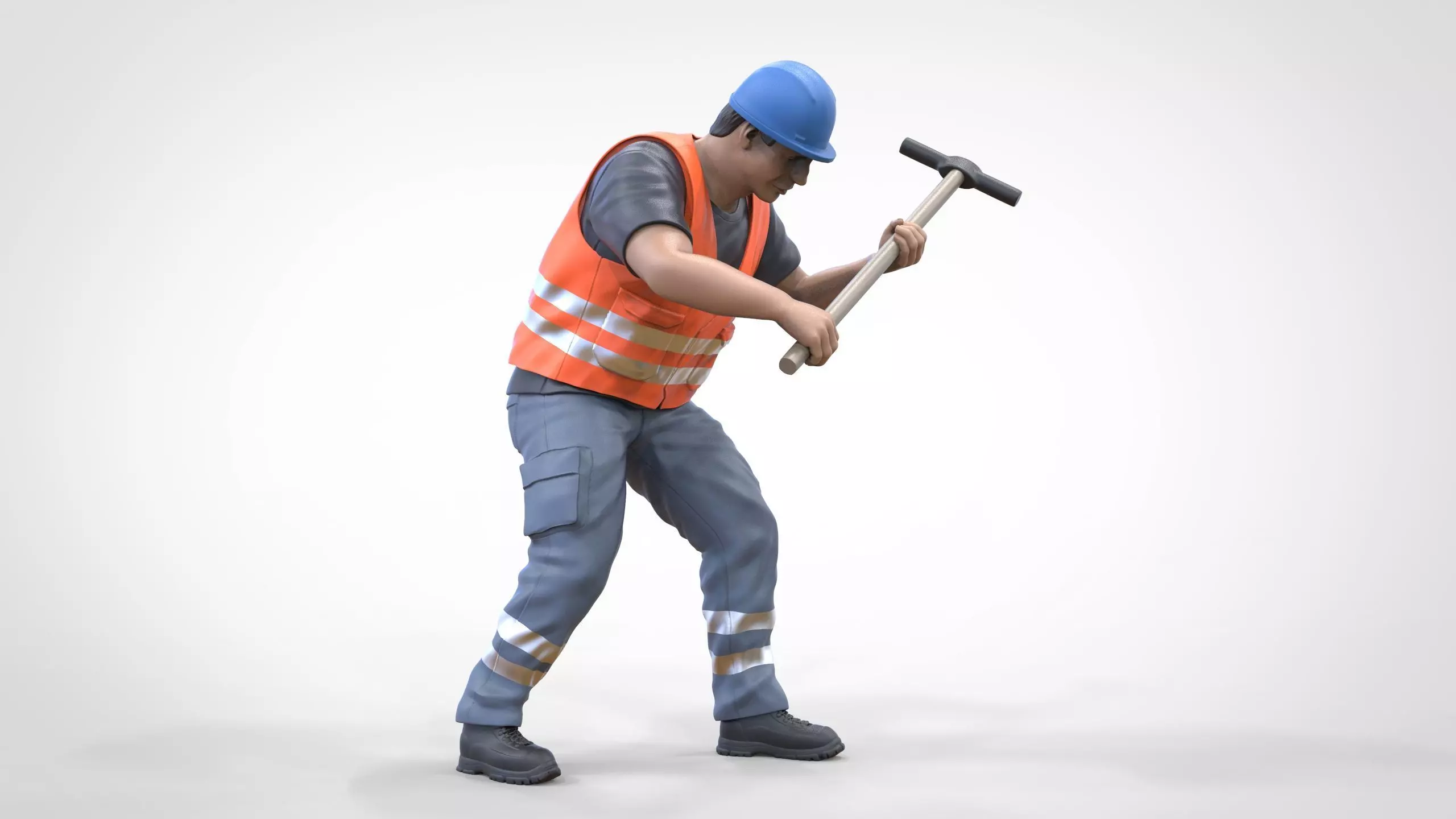 miniature, 3d print, decor, road worker, 1/64, crew, human, models, worker, rake, construction, Figurines, people, man, printable, working, tool, helmet, tool, Track, Railway,