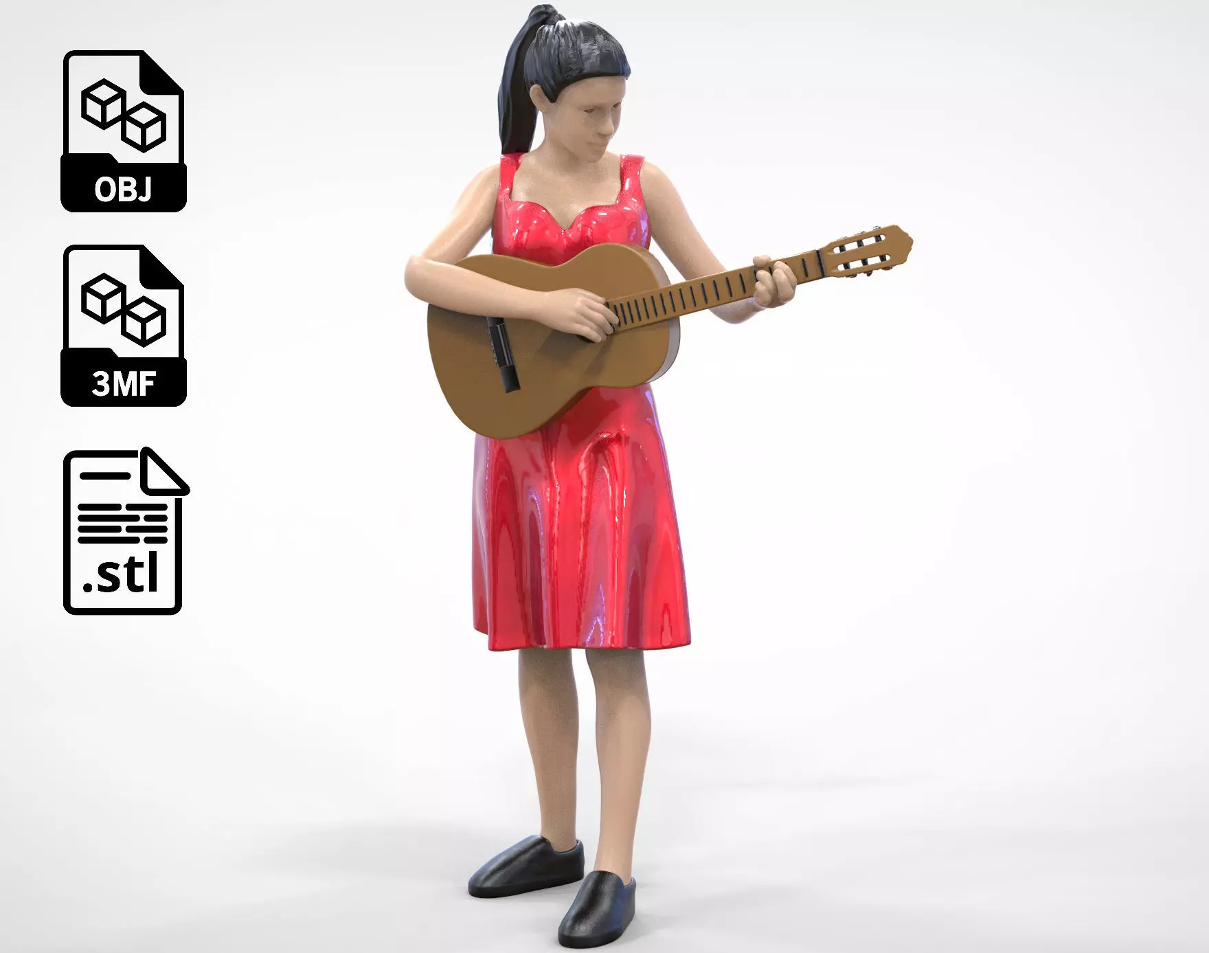 miniature , 3d print , decor , Musician , 1/64 , Playing , human , miniatures , Lady in red , Lady_in_Red standing , Figurines , Guitar , musical instrument , classic