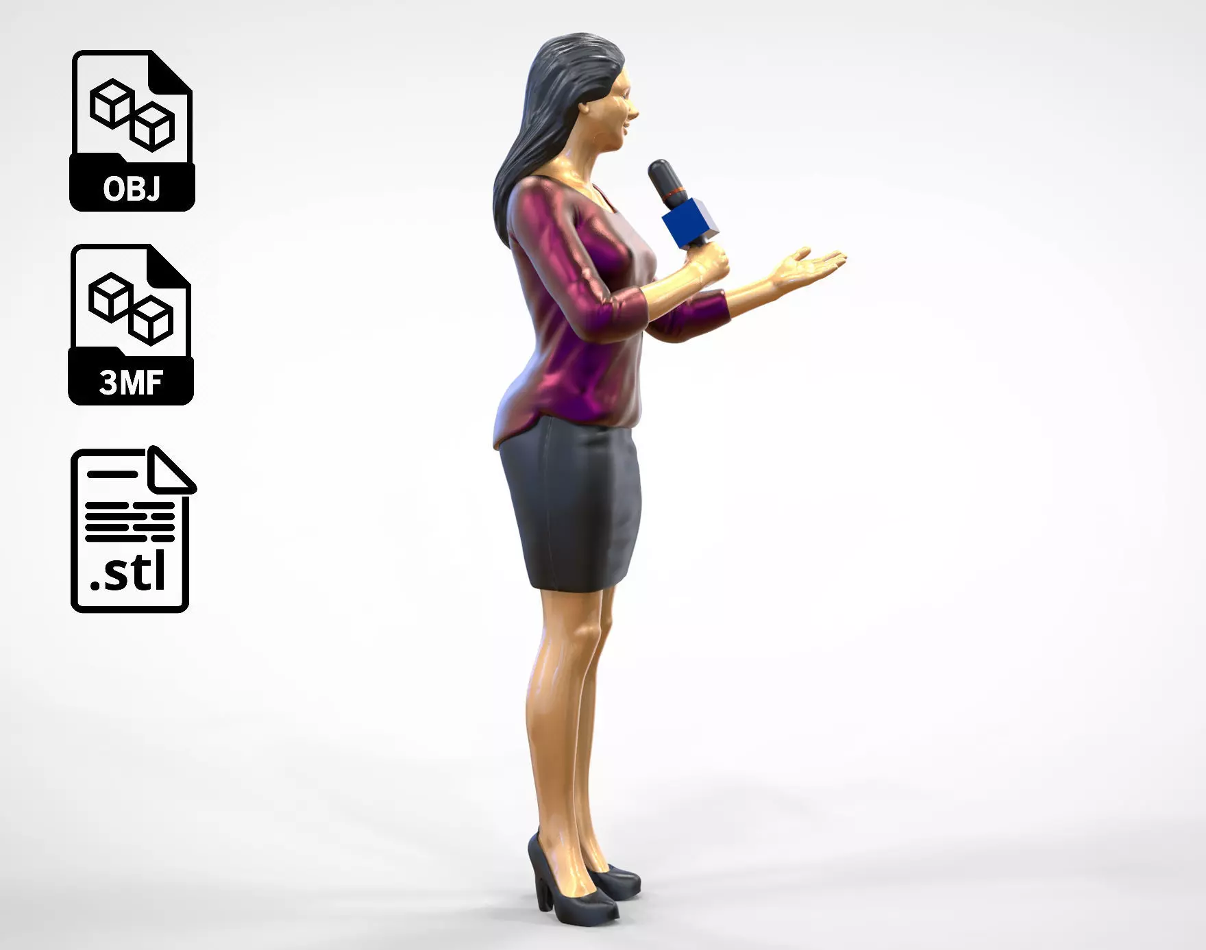 miniature , 3d print , decor , reporter , 1/64 , Microphone , human , miniatures , camera , uniform , standing , suit , Figurines , reporting , reporting , live, woman