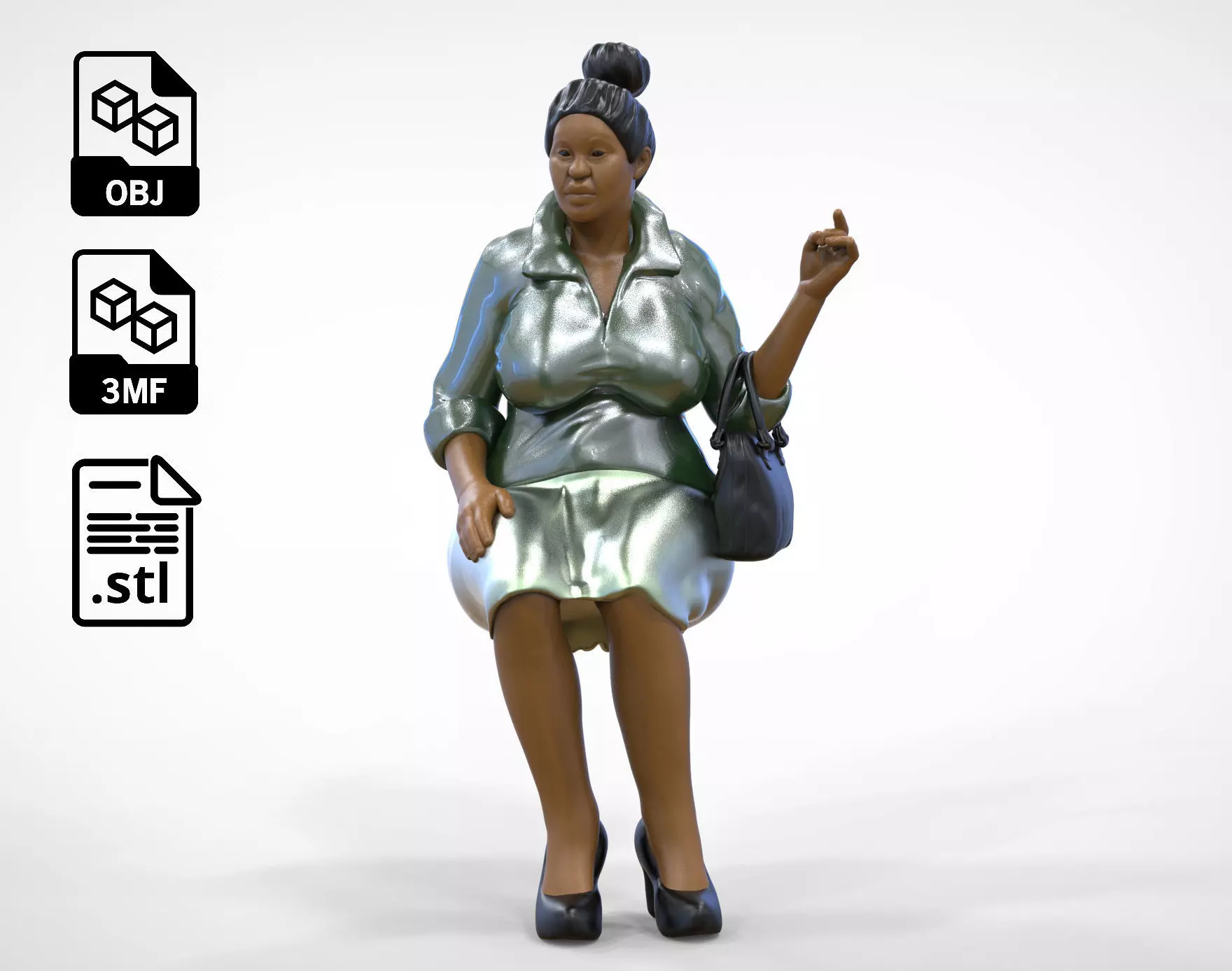 miniature , 3d print , decor , 1/64 , Spectator , human , miniatures , sitting , viewers , woman , viewer passenger , watching , waiting , car , race , football , purse , black skin