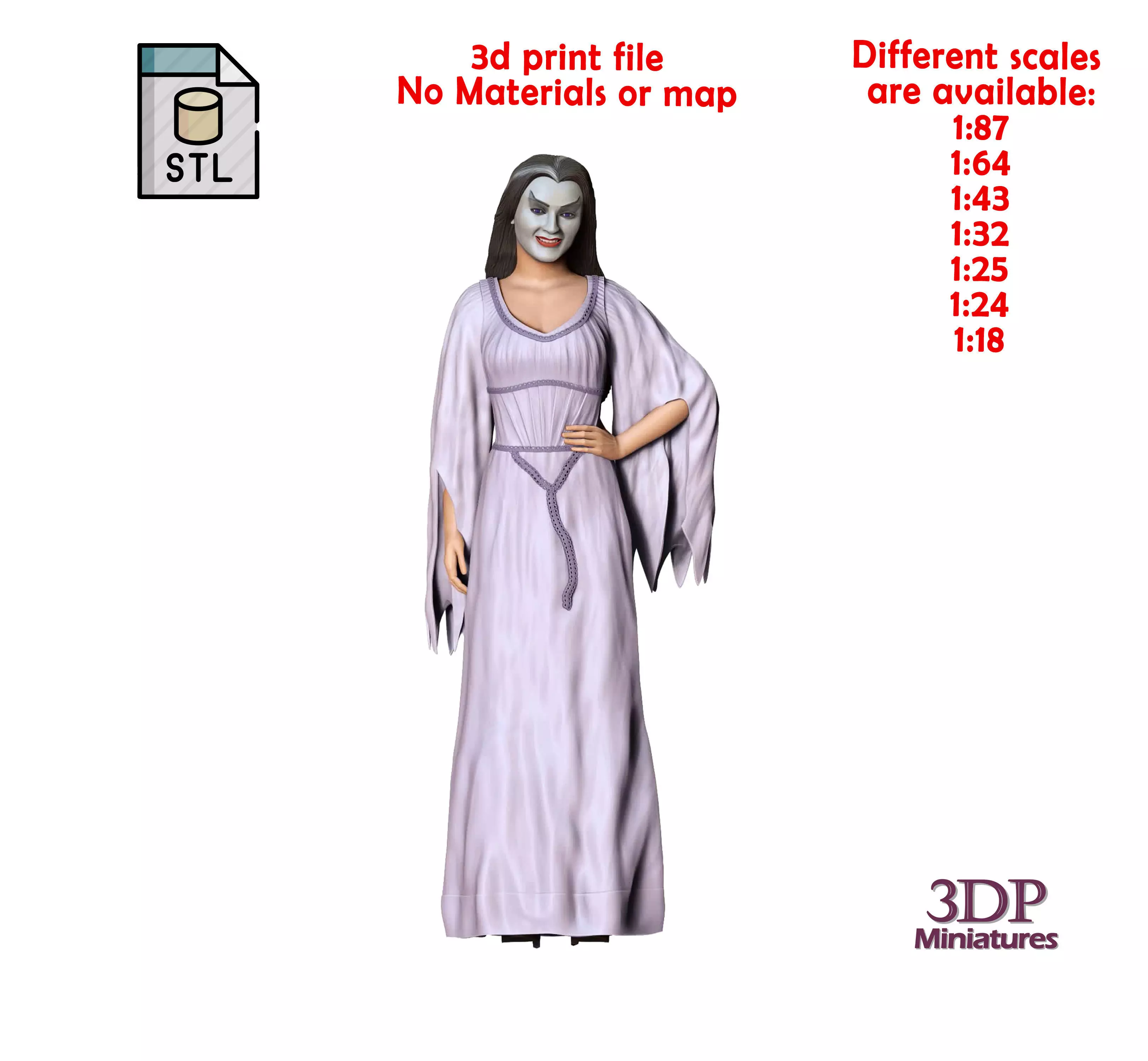 The figure was made ready in 7 scales 1:87, 1:64, 1:43, 1:32, 1:25, 1:24, and, 1:18 but it has enough quality up to 1:8.