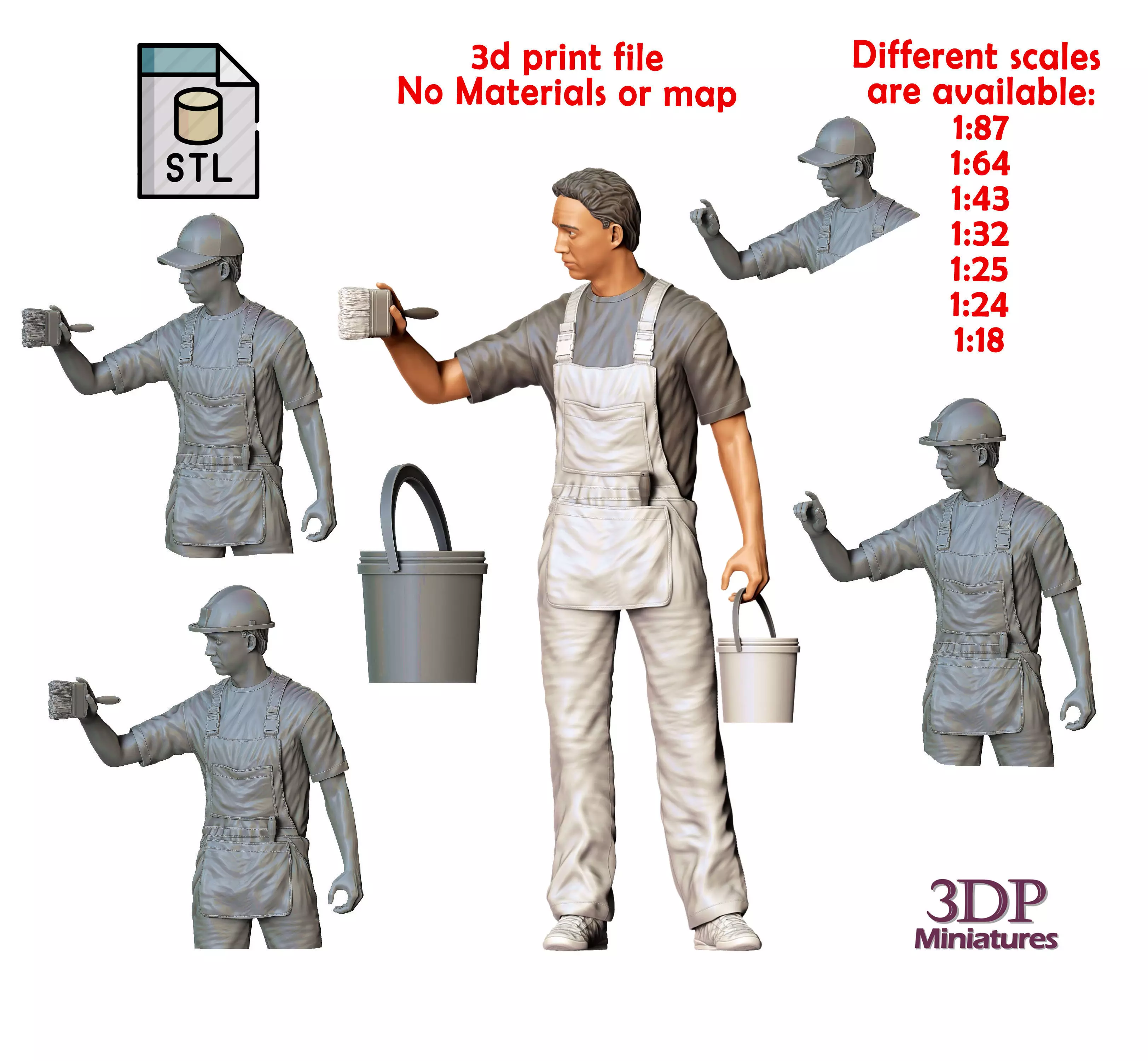 miniature, 3d-print, miniatures, Figurines, 3dp-Miniatures, Diorama, Figurine, Diecast, 3d-print-figures, 3dpminiatures, Patreon, painter, painting, worker, ladder, spray, brush, construction-worker, paint, bucket