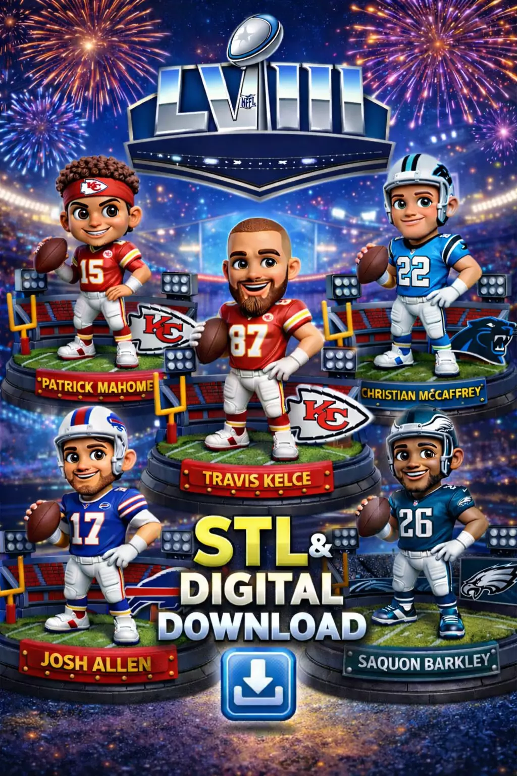This listing includes a football player collection of stylized chibi figurines, designed specifically for 3D printing. These are high-quality STL files, perfect for collectors, sports fans, and makers who love printing detailed display figures.