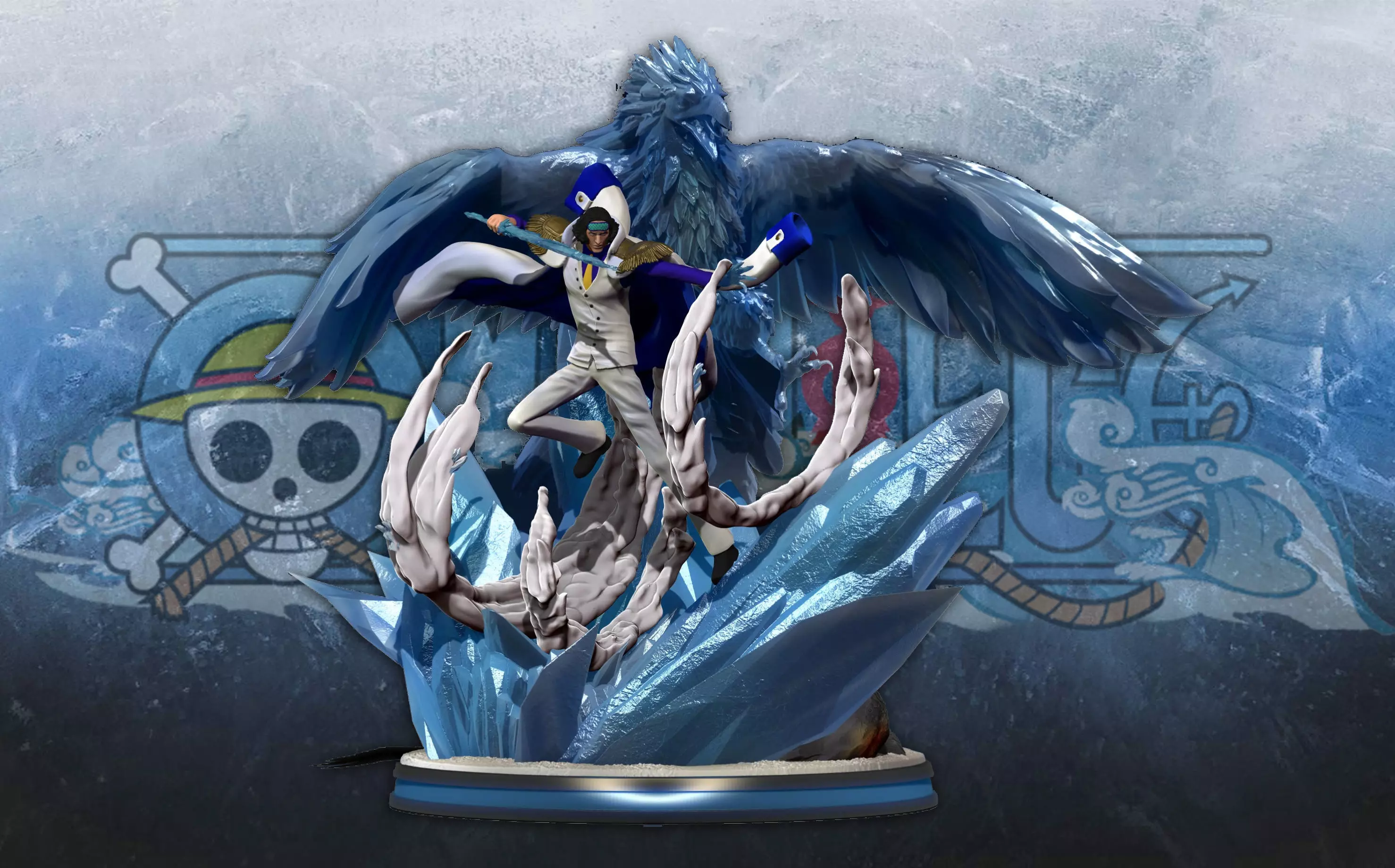 Aokiji Kuzan the coolest marine admiral from the anime / manga one piece, as a 3d printable statue / figurine!This is by far my favorite work so far im very happy with how it turned out, this is the most dynamic pose ive done so far and it worked really well.
