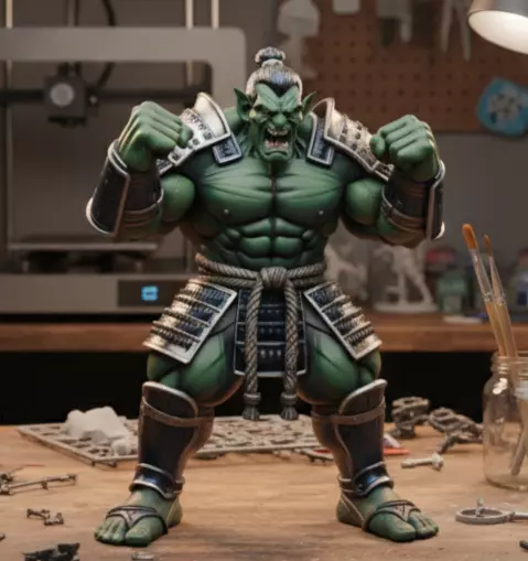 This fierce Oni Hulk sculpture is inspired by a fusion of classic Hulk imagery and traditional Oni aesthetics, blending the monstrous strengths of both characters into one formidable model design.