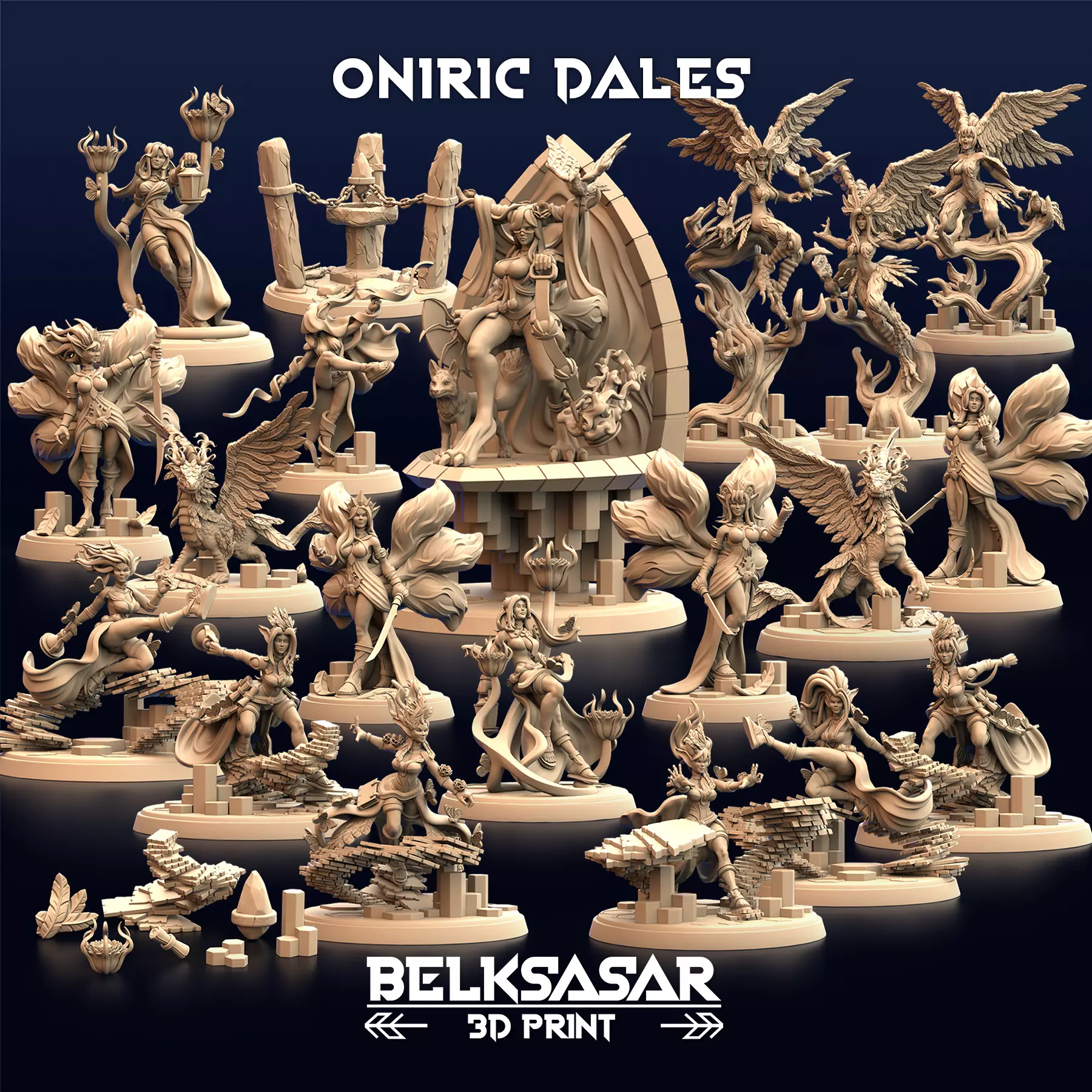 • Oniric Matriarch 75mm Clothed - Base 110mm• Oniric Matriarch Clothed - Base 60mm• x2 Deepdream Enchantress Clothed - Base 40mm• x6 Dream Teller Clothed - Base 50m• Idyllic Dream Pin Up Clothed - Base 32mm• x3 Oniric Navigator Clothed - Base 40mm• x2 Oniric Wyvern Dragon - Base 40mm• x4 Oniric Wyvern Maiden Clothed - Base 32mm• Cauldron of Dreams - Base 60mm• 7 Props• 21 Bases