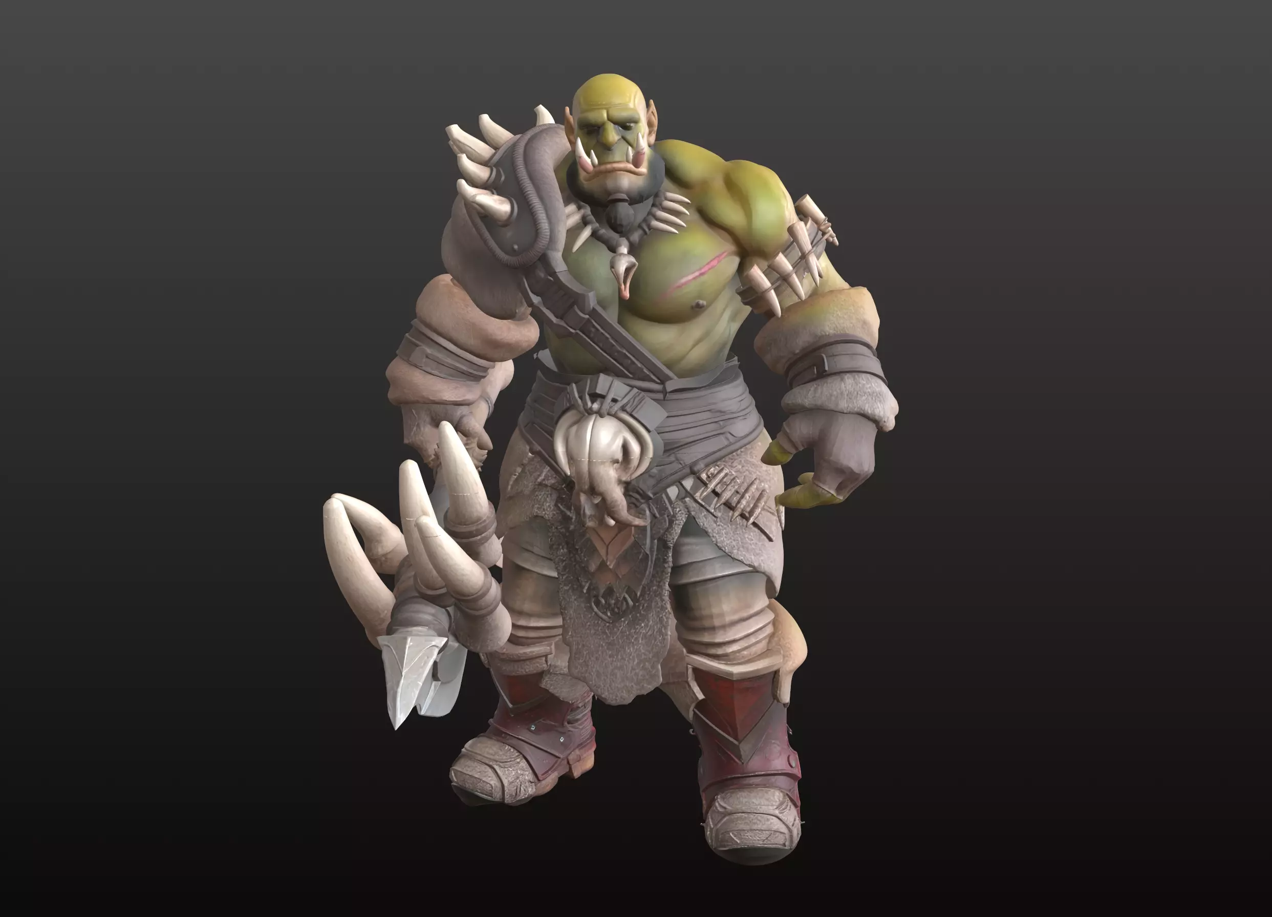 A fierce and intimidating 3D model featuring a terrifying orc warrior, sculpted with raw power and brutal presence. This monstrous fighter wields a massive primitive axe-club, crafted in a rugged, hand-hewn style that highlights his savage nature. With muscular proportions, rough skin textures, and a menacing stance, this orc becomes an essential addition to any fantasy collection, perfect for tabletop battles, dioramas, or display shelves.
