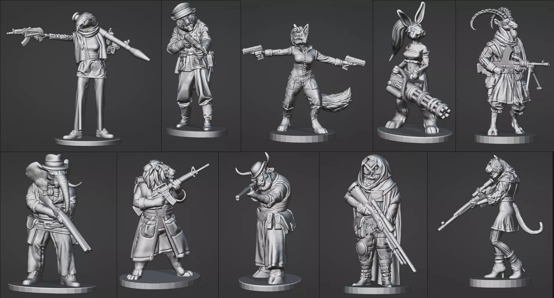 Bring the wildest firefight to your tabletop with PAWS AND GUNS, a unique collection of highly-detailed anthropomorphic animal miniatures armed to the teeth! Perfect for roleplaying games, skirmish wargames, dioramas, or simply collectors who love a little personality in their firepower.