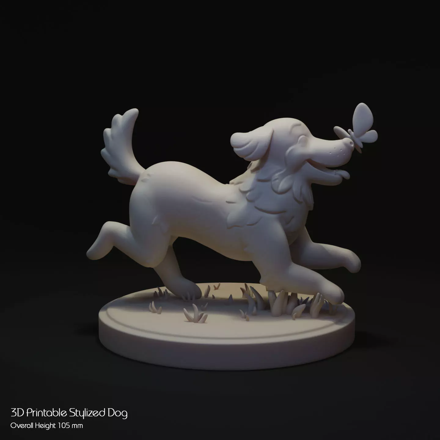 Brighten up your 3D printing portfolio with this joyful stylized Golden Retriever! Captured mid-leap, this friendly dog is full of excitement as it chases a butterfly, making it a perfect piece for any animal lover or 3D printing enthusiast.