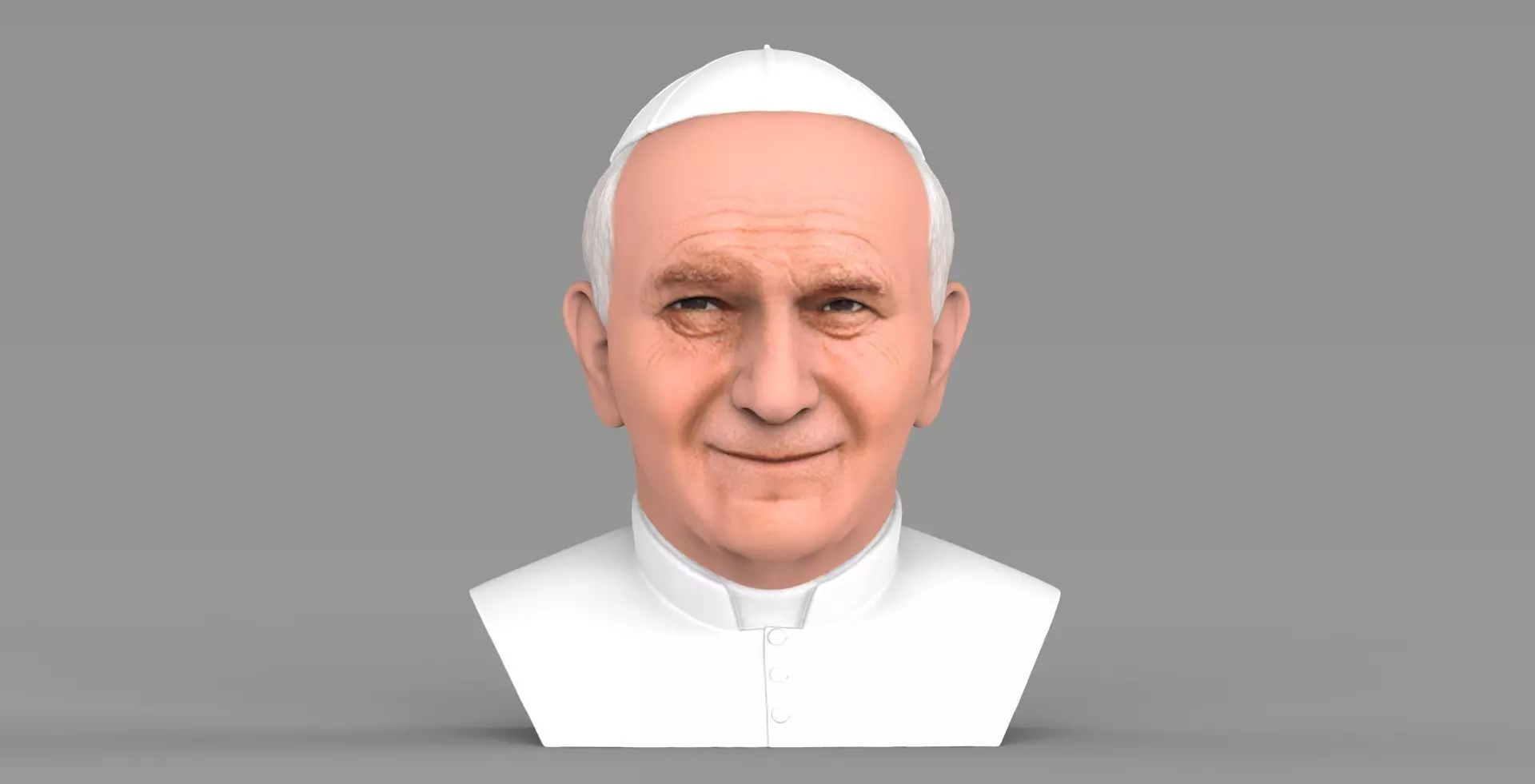 If you want the version with texture it is available here: https://www.cgtrader.com/3d-print-models/art/sculptures/pope-john-paul-ii-bust-3d-printing-ready-stl-obj-formats
