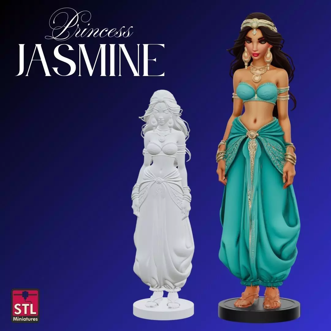 1 STL file of Princess Jasmine in comic styleElegant pose with iconic outfit and joyful expressionIncludes support baseOne-piece model optimized for 3D printingIdeal for collectors of princess figures and fanart sculpturesKeywords: STL file, Princess Jasmine, comic style fanart, 3D printable model, fairytale character, Arabian princess, resin figure, elegant sculpture, chibi Jasmine, fantasy collectible, princess statue, Disney fanart, cute STL file, stylized model, one-piece print