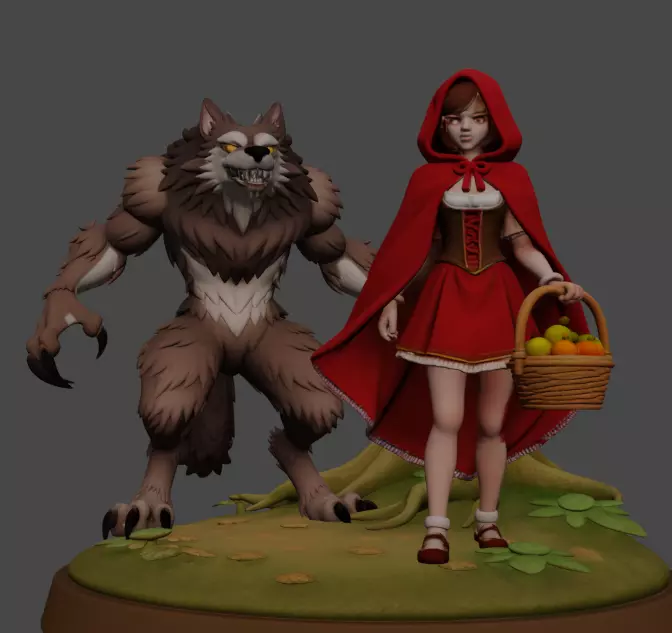 Print-optimized: Separated pieces (Red Riding Hood, Wolf, forest base) for easy printing and painting.