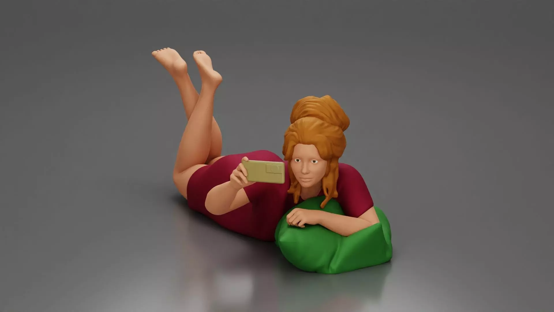 Relaxed Woman Lying on Pillow Taking a Selfie with Phone 3D print model