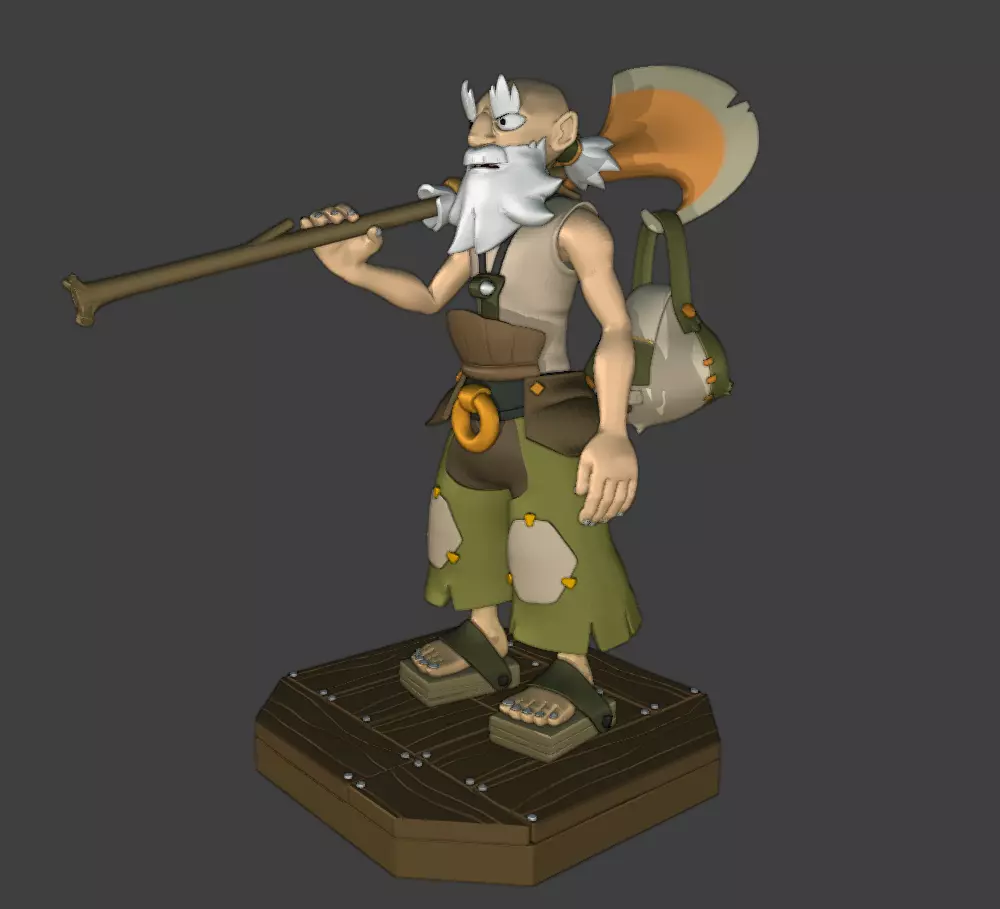 Ruel Stroud is based on a character featured in a French Anime series called Wakfu. Ruel is a colorful character with an obessesion for gold. Ruel was a compicated character to translate into 3D. The series is a 2D animated series, so developing a 3D design embodying the most common proportions, details, and characteristics of Ruel was challenging. Ruel has been designed to be printed in several parts, making it easier to print while maintaining important details and cleaner results. The default scale is just over 75mm assembled. The model can be scaled up or down for printing, but scaling down too far with increase the fragility of thinner parts. The model has been provided in STL format, a universal format for 3D printing, accessible from most 3D and slicing apps.