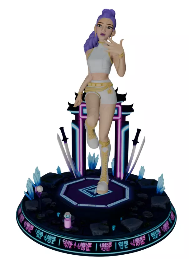 Capture the rhythm and contagious energy of Rumi in her natural element! This 3D figure shows the most charismatic member of the K-Pop Demon Hunters trio in an elegant dance pose, capturing a moment full of grace and movement. Without needing weapons, her cheerful expression and dynamic posture convey all the attitude of a true idol who commands the stage.