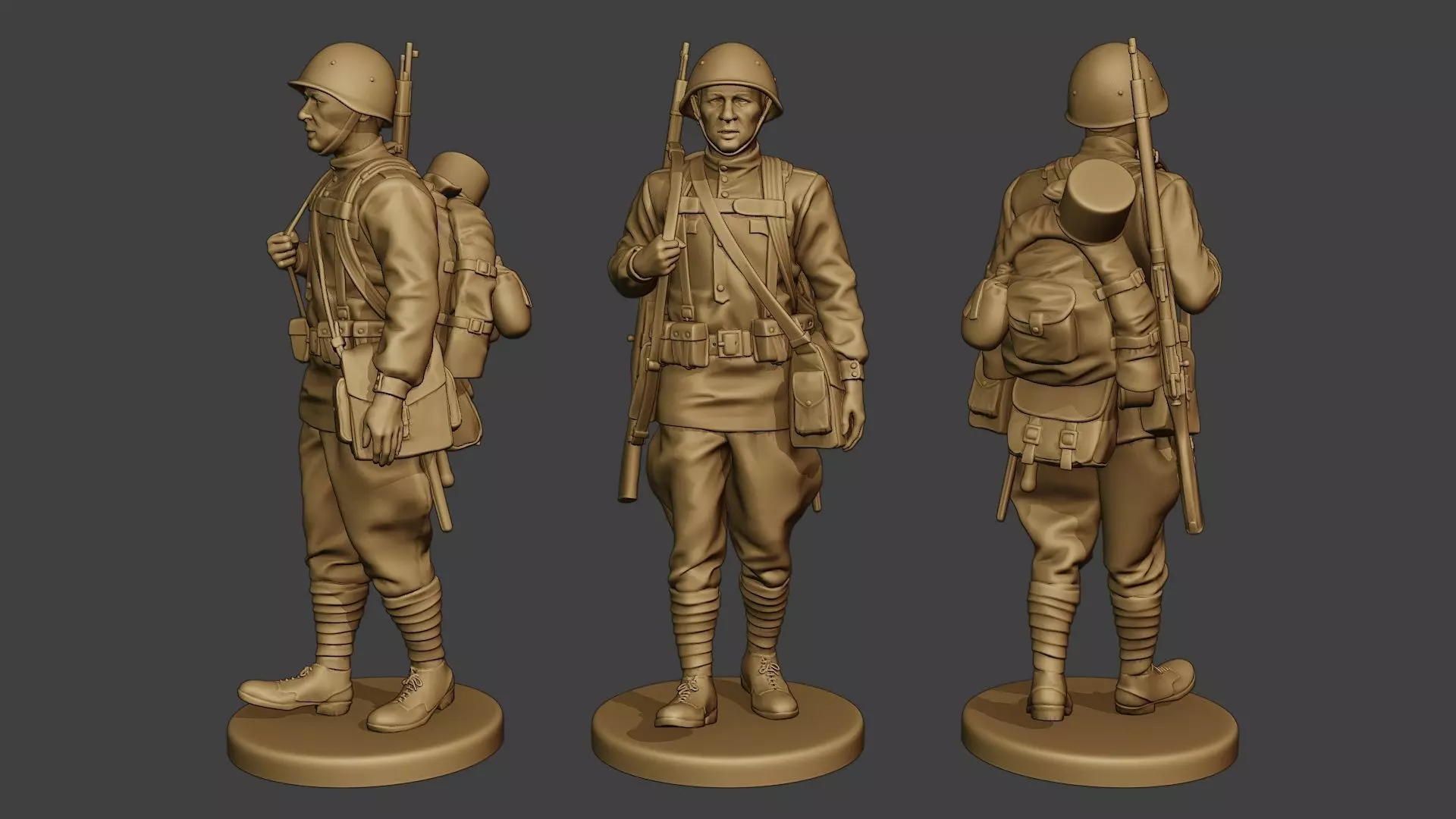 - WW2 Russian soldier model with guns, clothes and equipment.