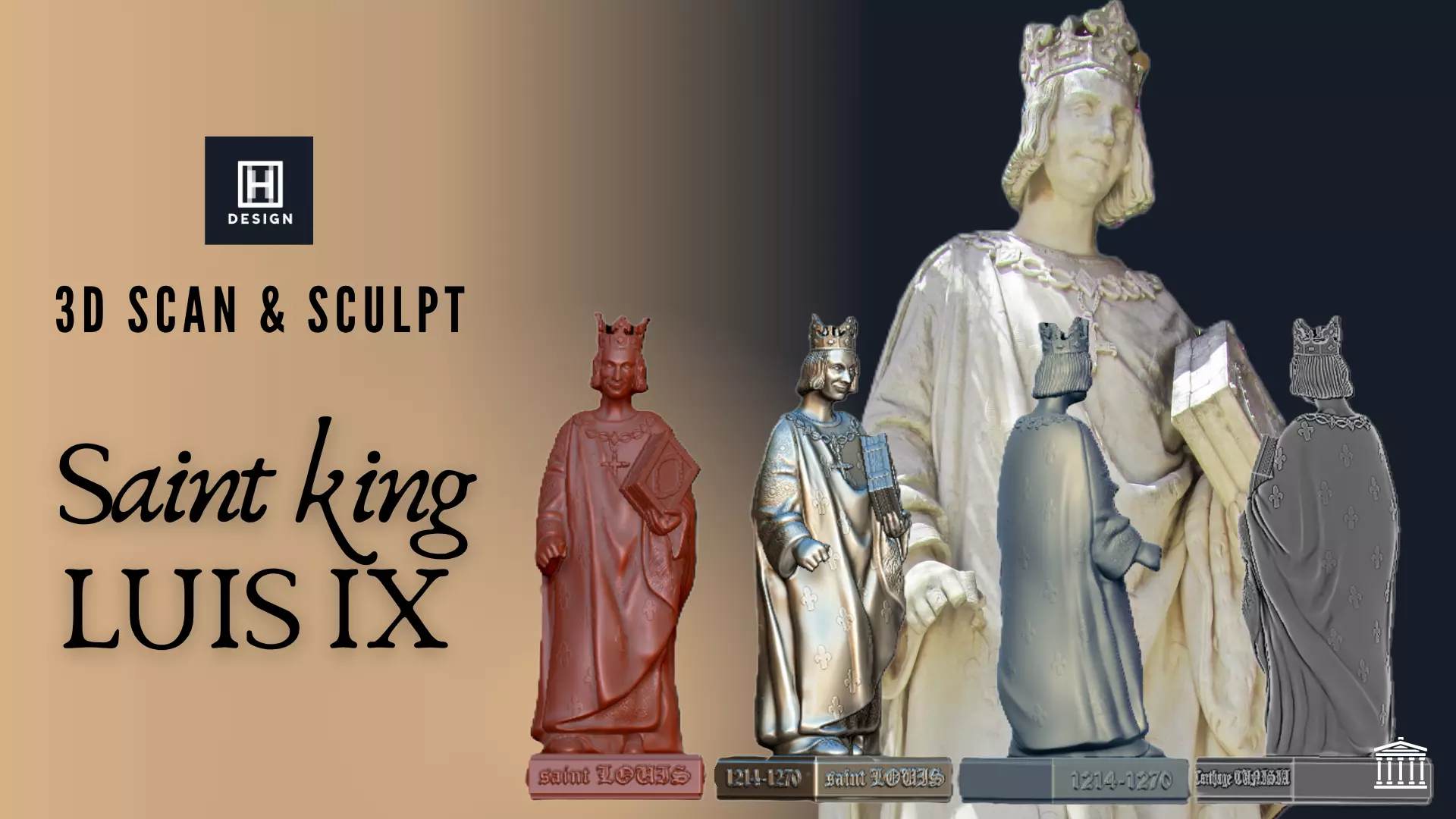 This high-quality 3D model of Saint Louis (King Louis IX of France) is based on a real statue located near the Carthage Museum in Tunisia. Captured via photogrammetry and digitally restored in ZBrush, the model blends historic accuracy and artistic clarity.