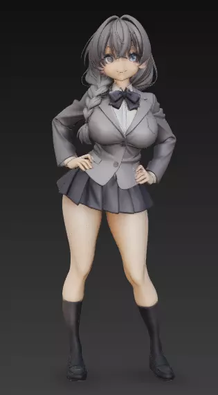 Modelo 3D em formato STL de personagem feminina em estilo anime original, representando uma estudante com postura confiante.