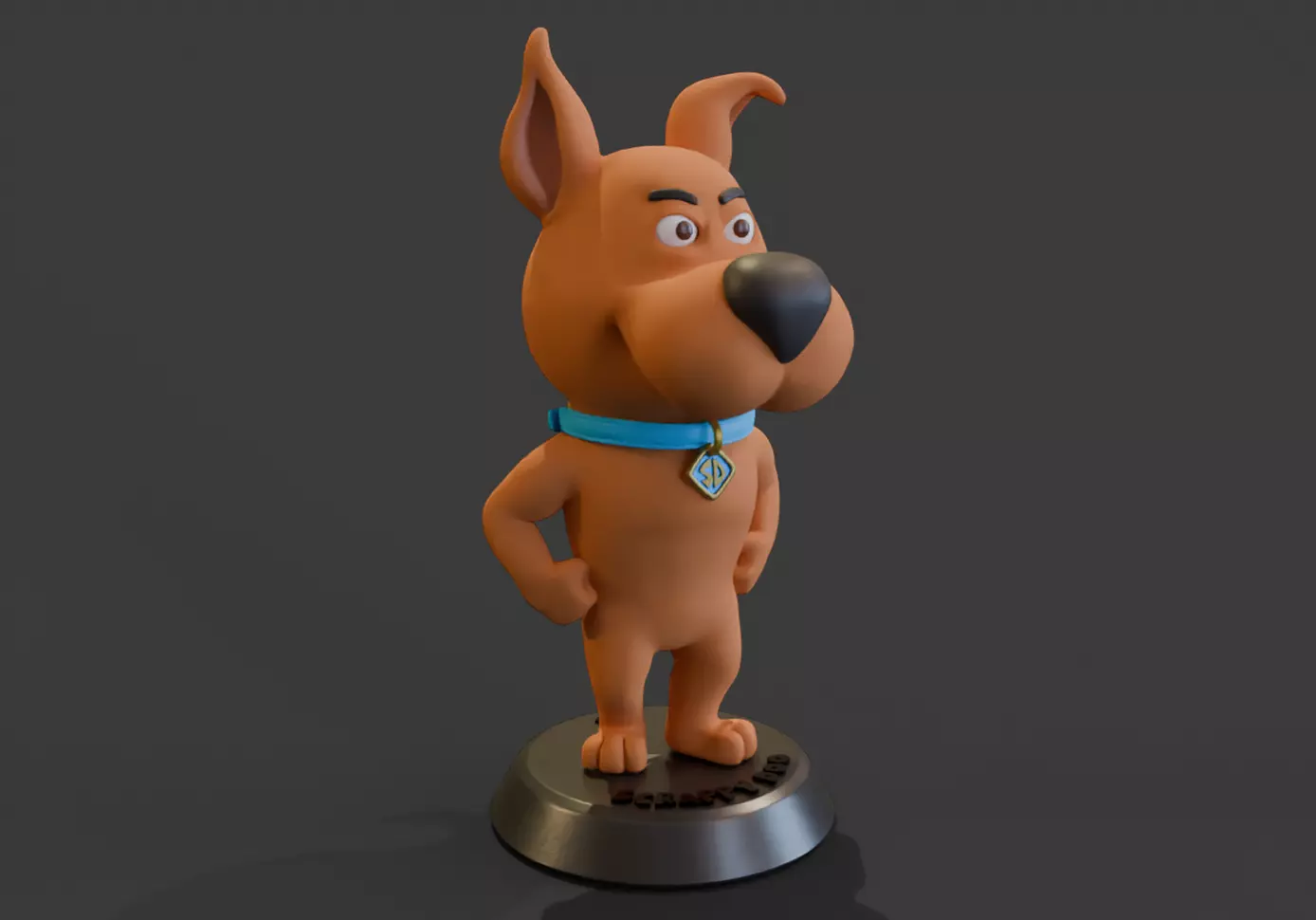 Based on a character depicted in the Scooby Doo cartoons, Scrappy Doo is Scooby's nephew, often appearing in episodes, charging in where he really should not. Scrappy stands about 70mm tall, but can be scaled up or down for printing, relative to what is possible with the chosen printer. The model has been provided as a whole and in parts for easier printing. Scrappy has been split into head, body, and base.