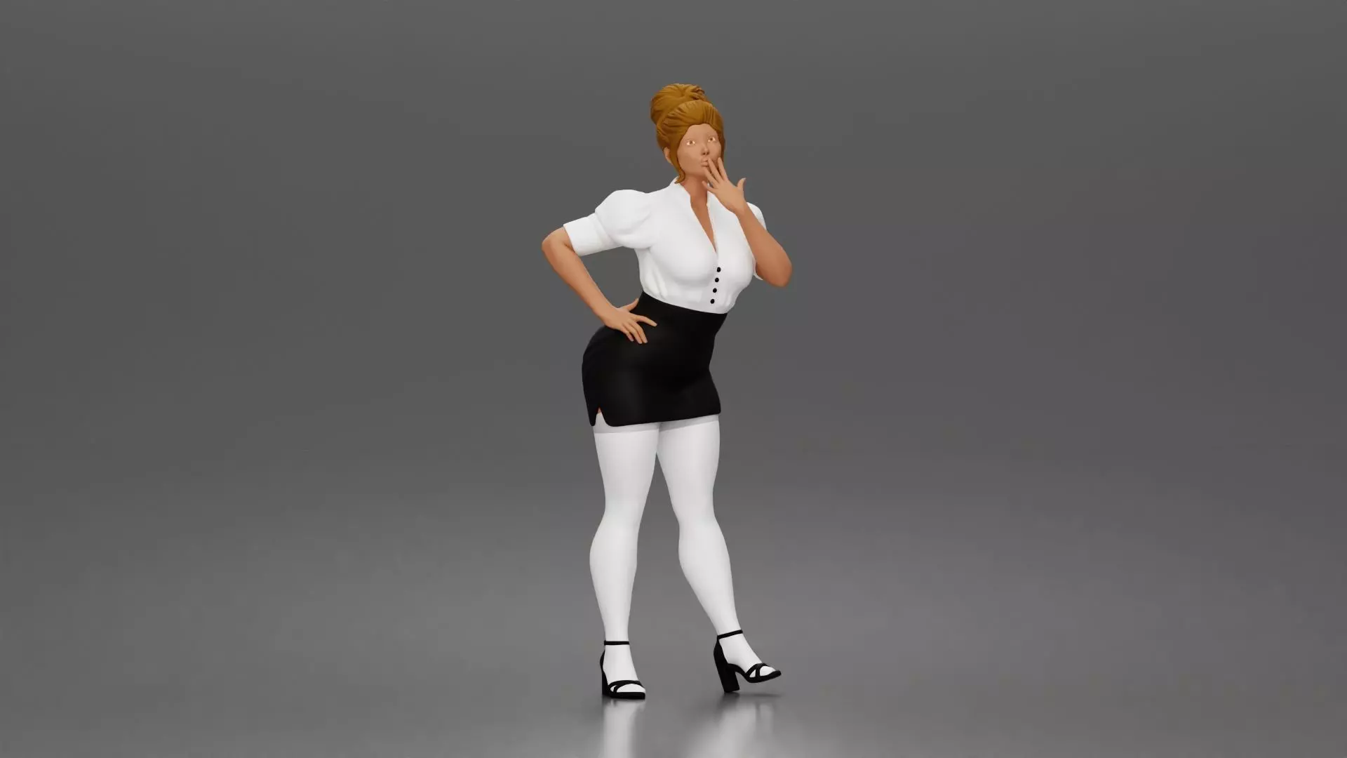 Secretary blows kiss wearing buttoned blouse skirt heels 3D print model