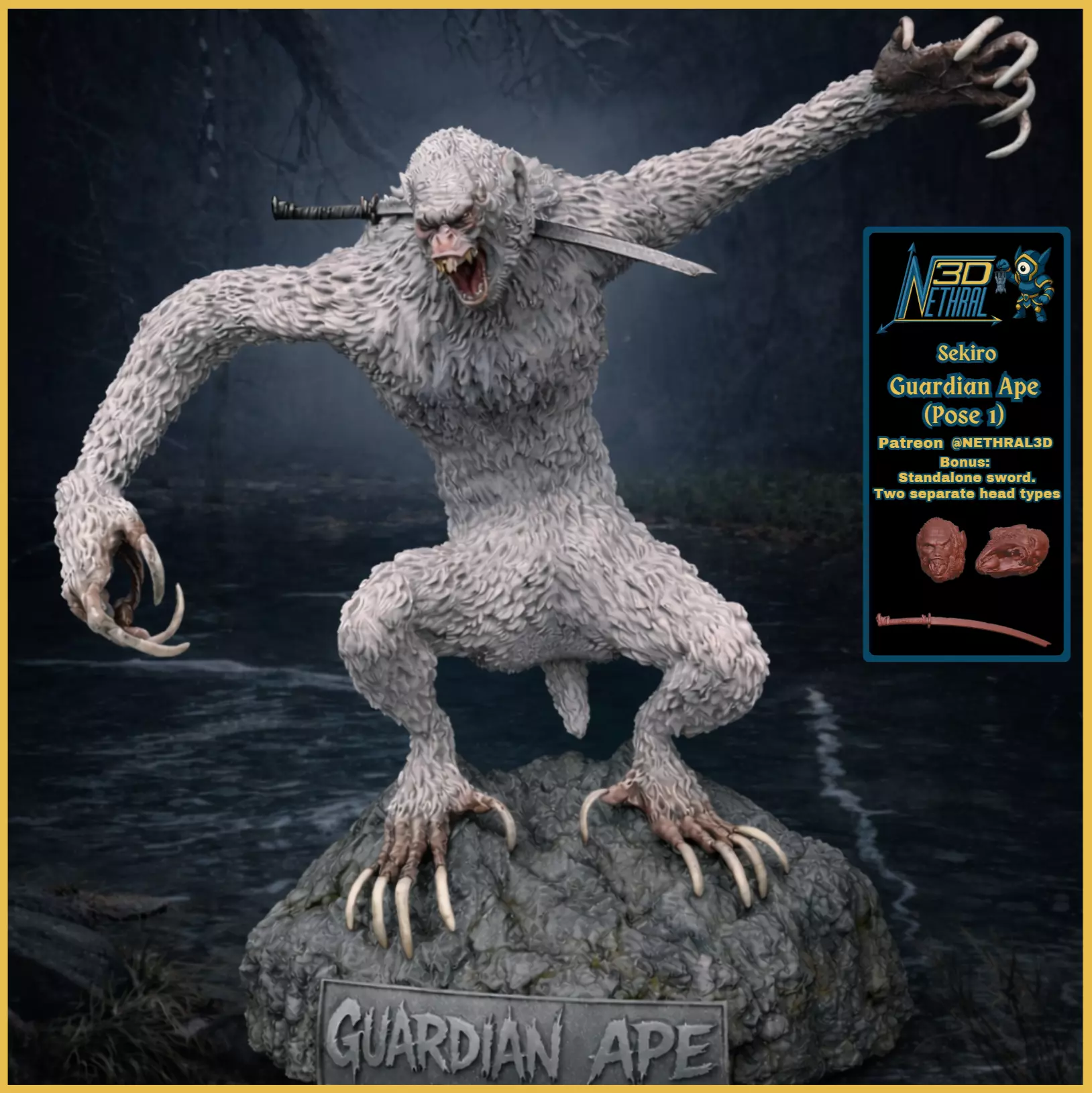 Sculpted to reflect every sinew, scar, and roar, this model embodies the chaos of Sekiro’s most iconic beast.