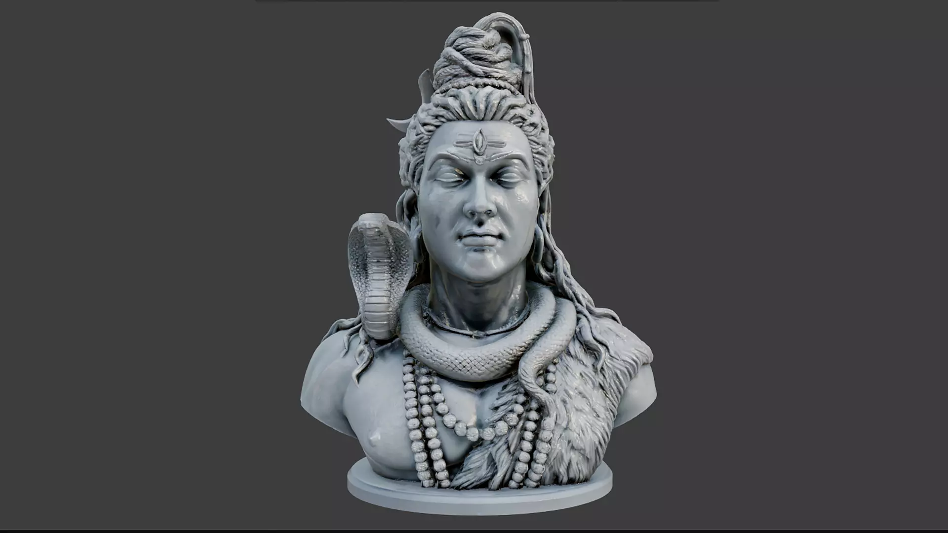 Bring divine energy into your space with this highly detailed Lord Shiva (Mahadev) bust 3D model, designed specifically for 3D printing and digital use. This model captures the powerful and serene expression of Shiva, complete with iconic elements like the third eye, snake (Vasuki), rudraksha beads, and matted hair (Jata).