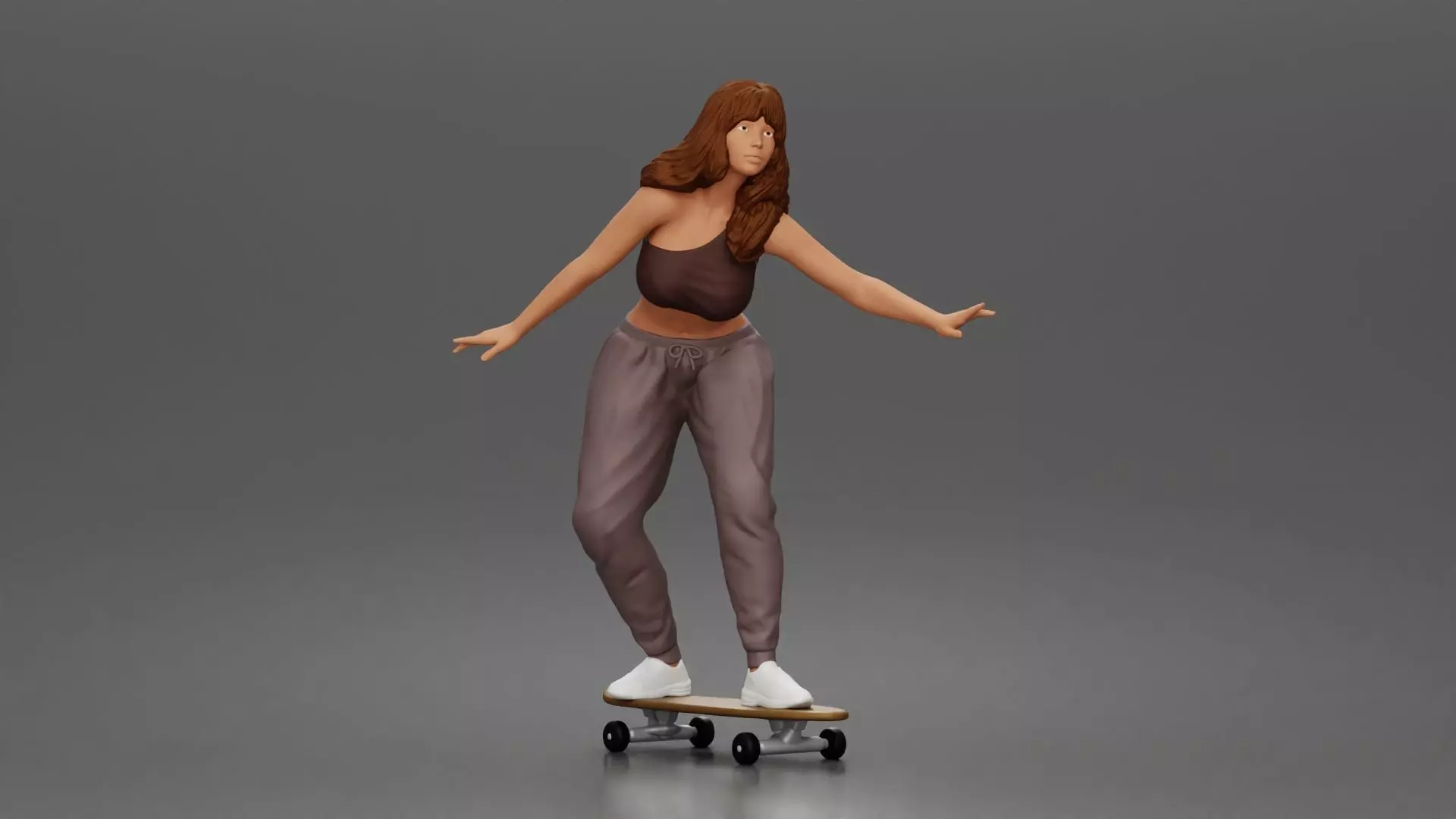 Skater girl balances gracefully wearing crop top jogger pants 3D print model