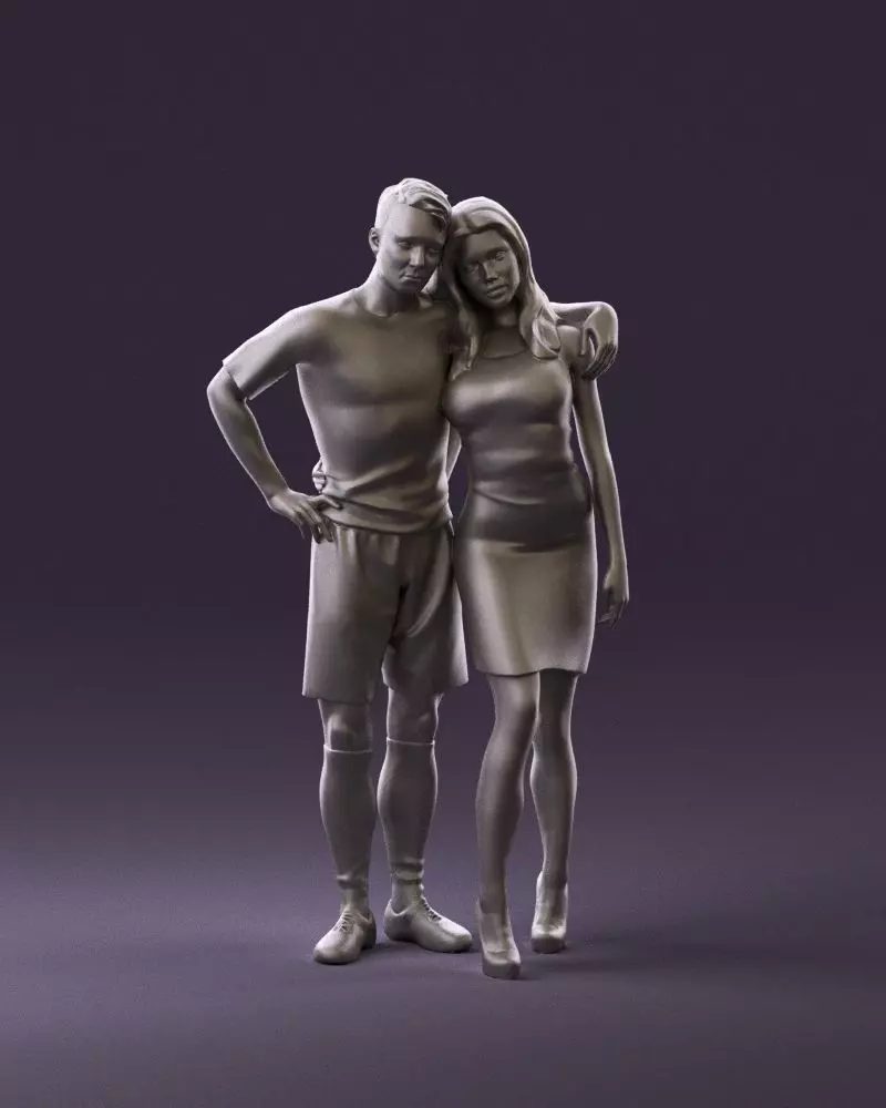 Soccerplayer with girl in black Dress 0922 3D Print Ready 3D print model