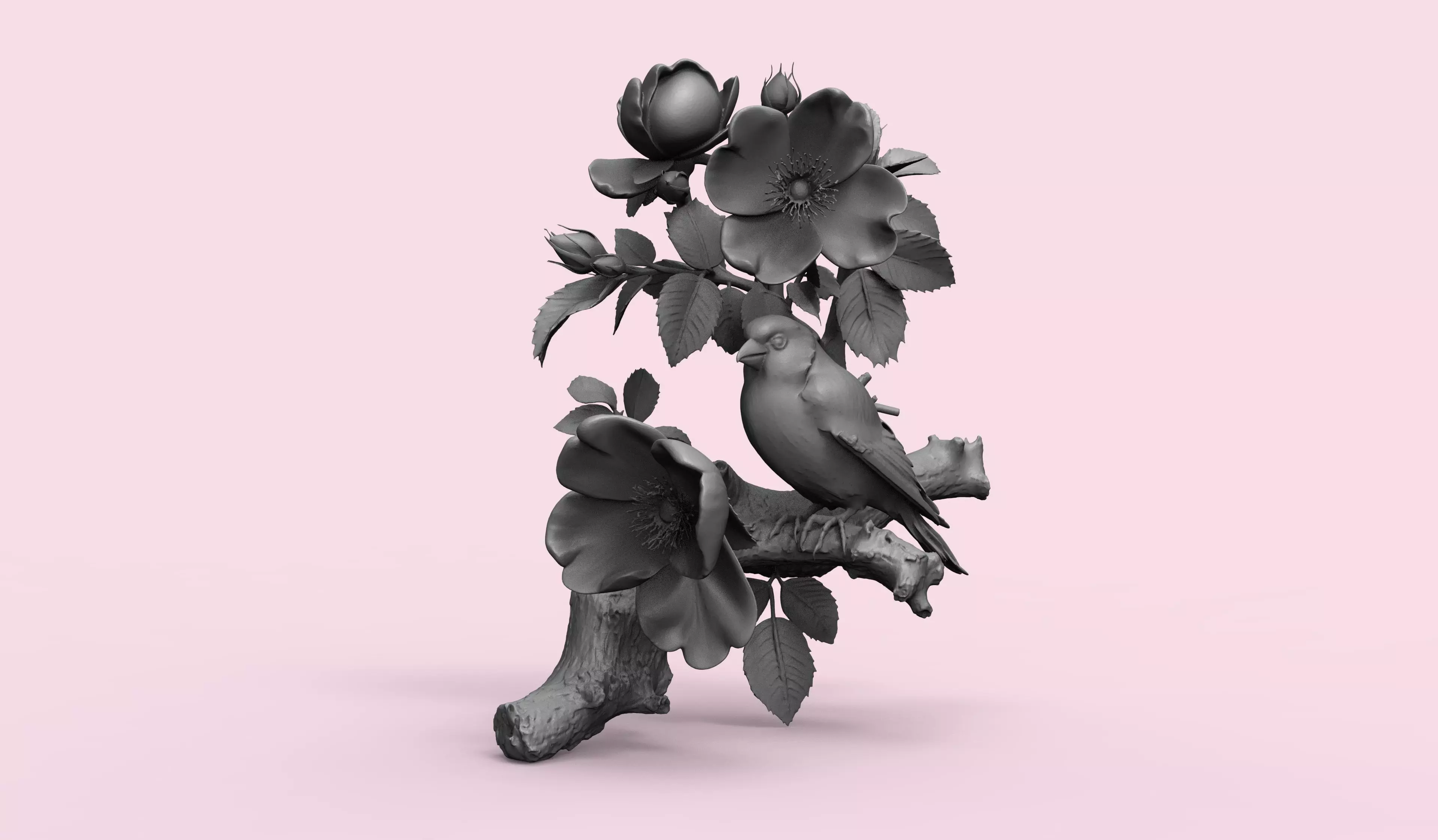 You are purchasing a high-quality decorative songbird STL model, featuring a small bird perched on a natural tree branch, surrounded by detailed blooming flowers and leaves.This miniature is ideal for elegant dioramas, decorative displays, fantasy scenes, or artistic collections.